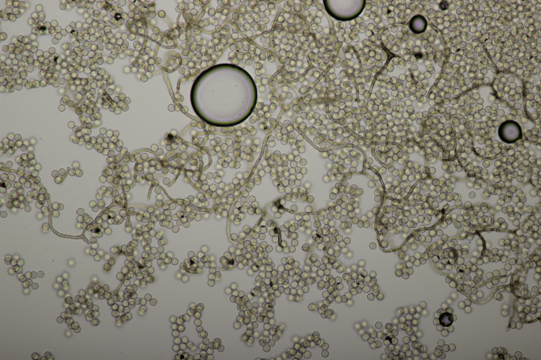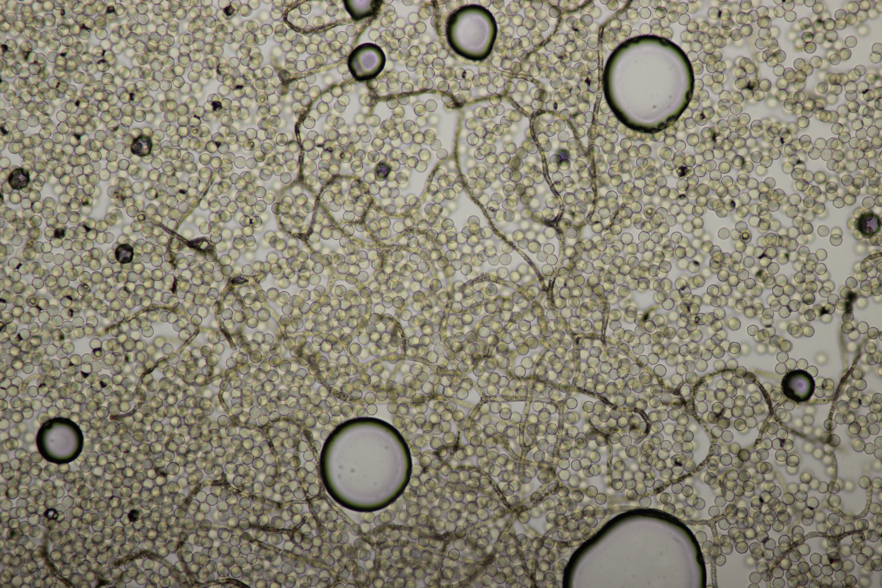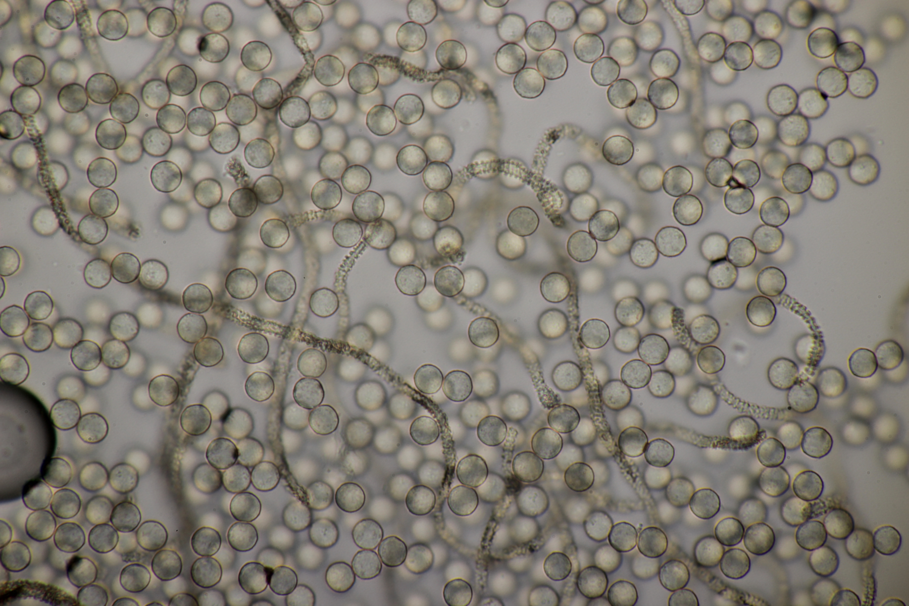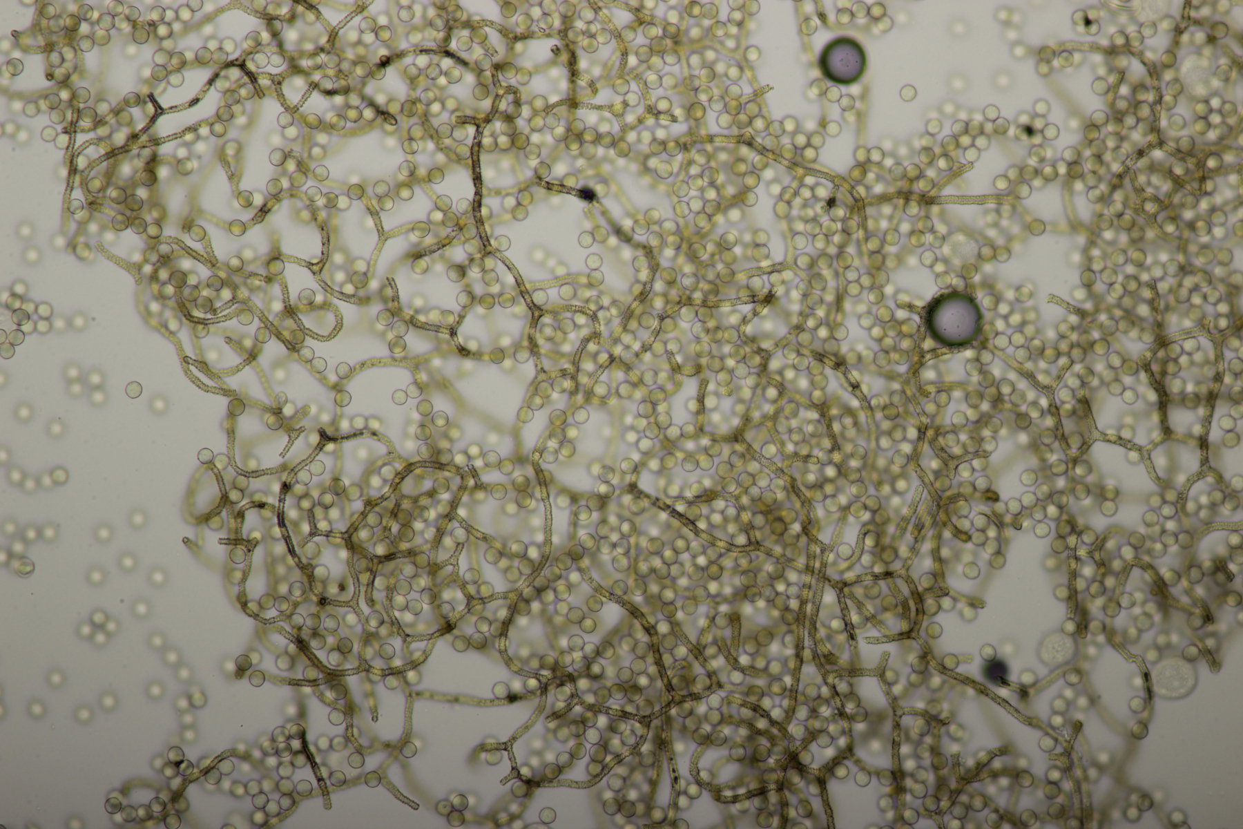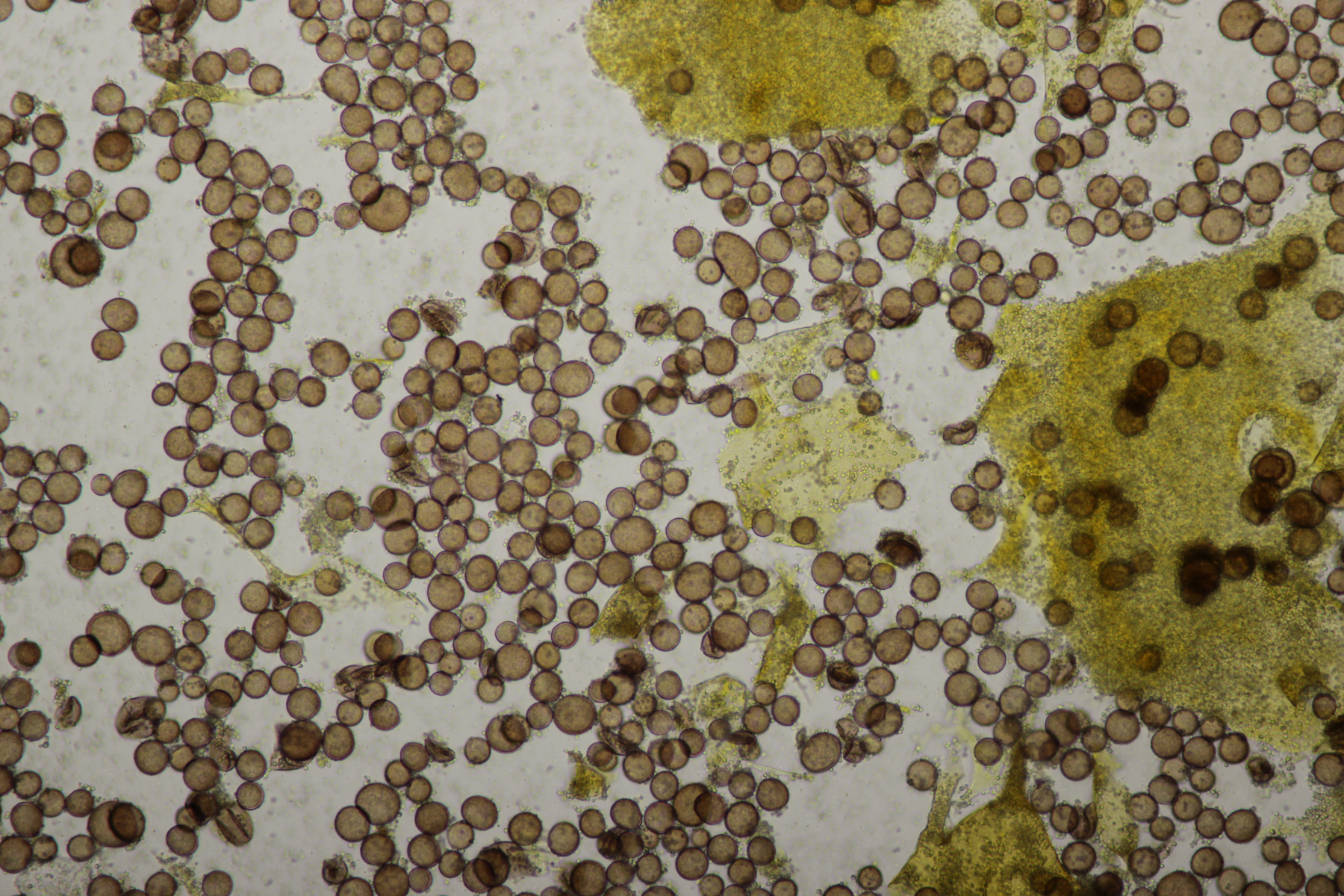 Bei den Mikrofotos des Craterium sieht man das die Fruchtkörper etwas gestört sind, da sich sehr uneinheitlich große Sporen ausgebildet haben.
