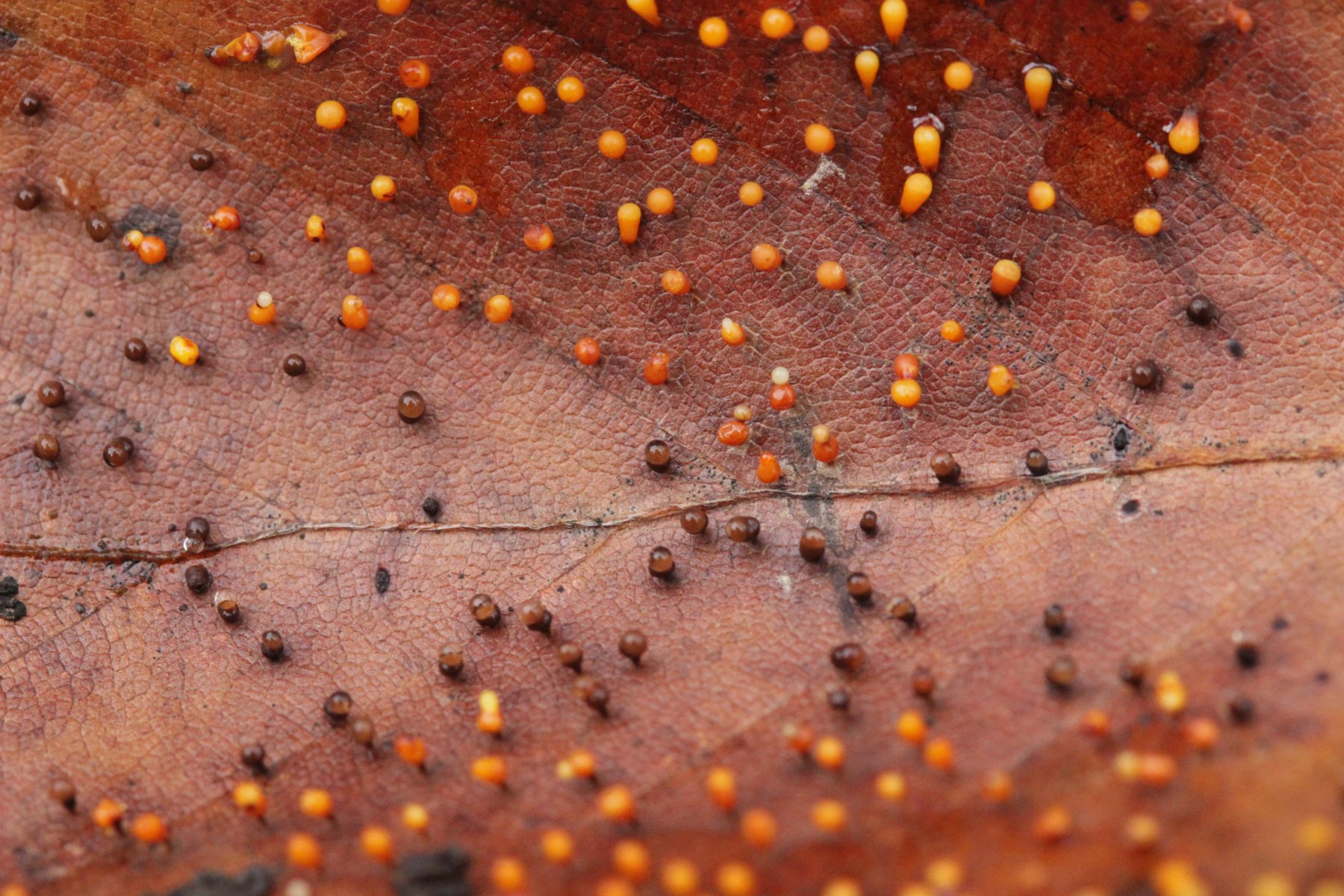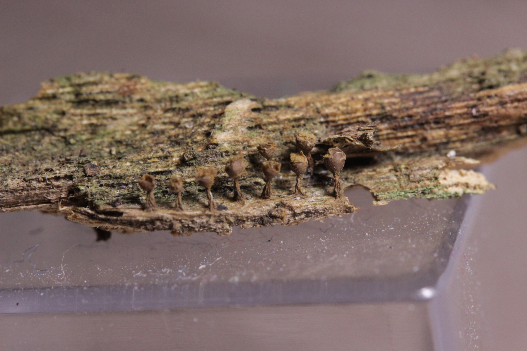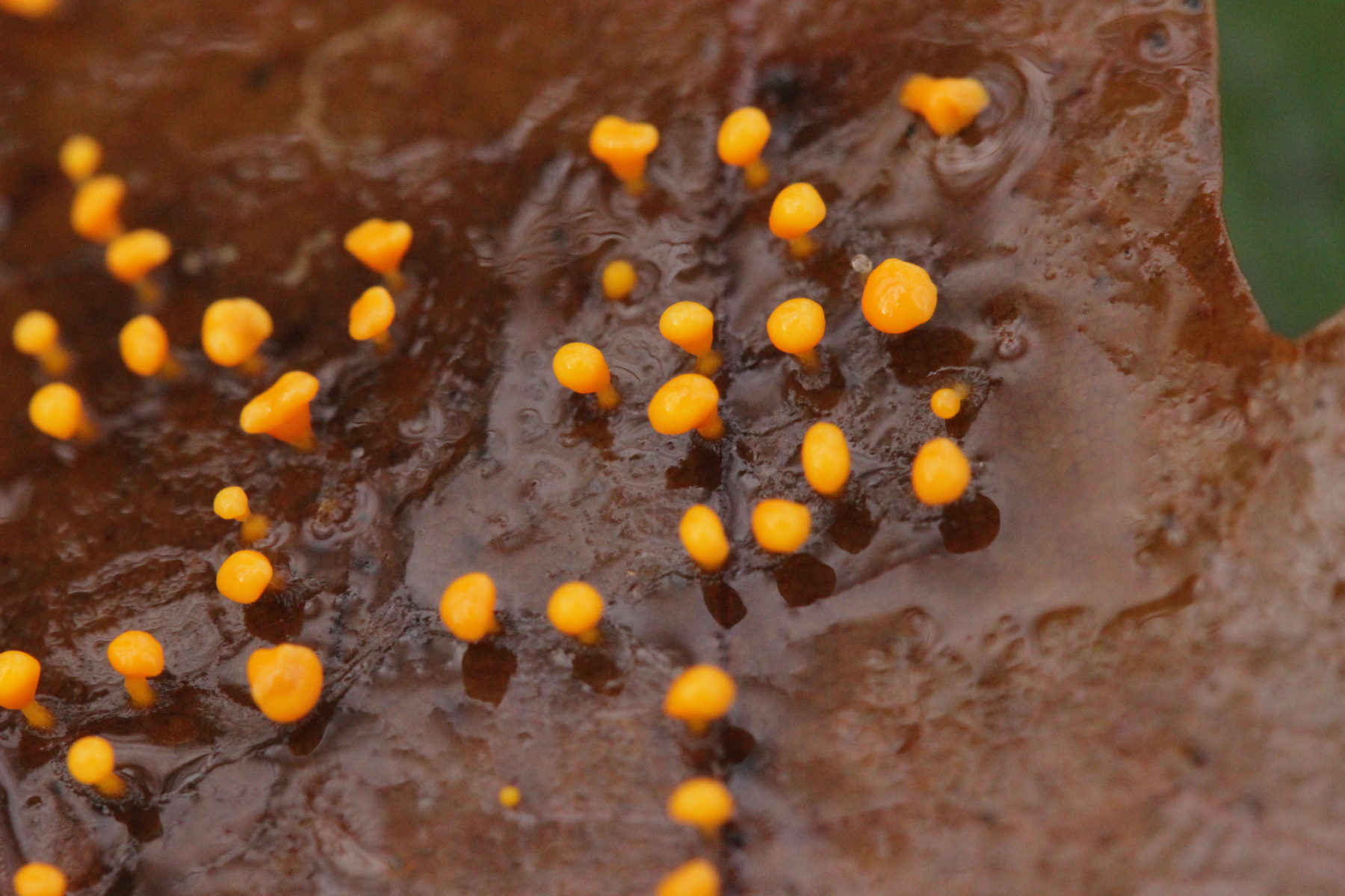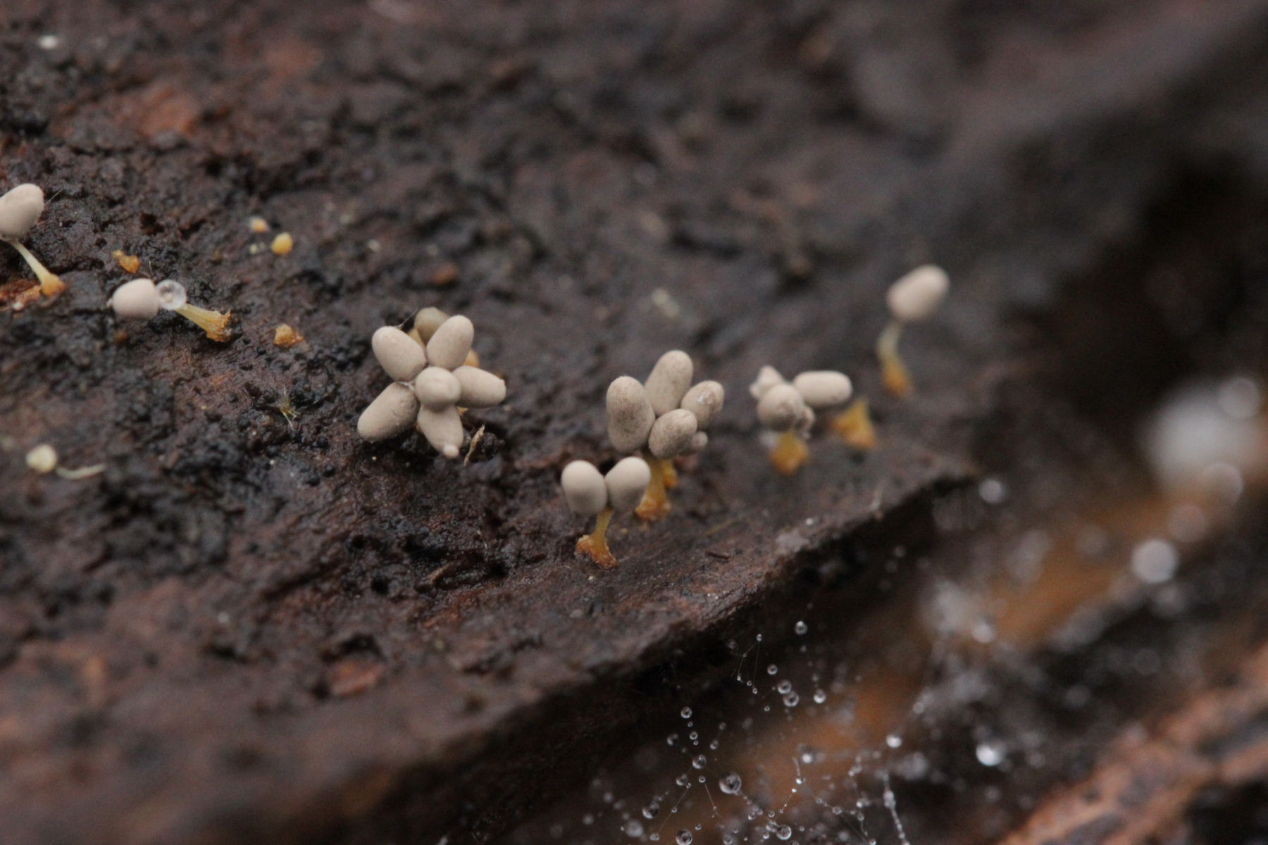 die zunächst orangenen, später kelchförmigen Schleimer sind Craterium minutum.