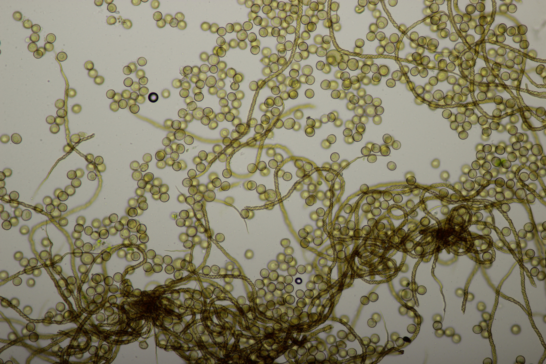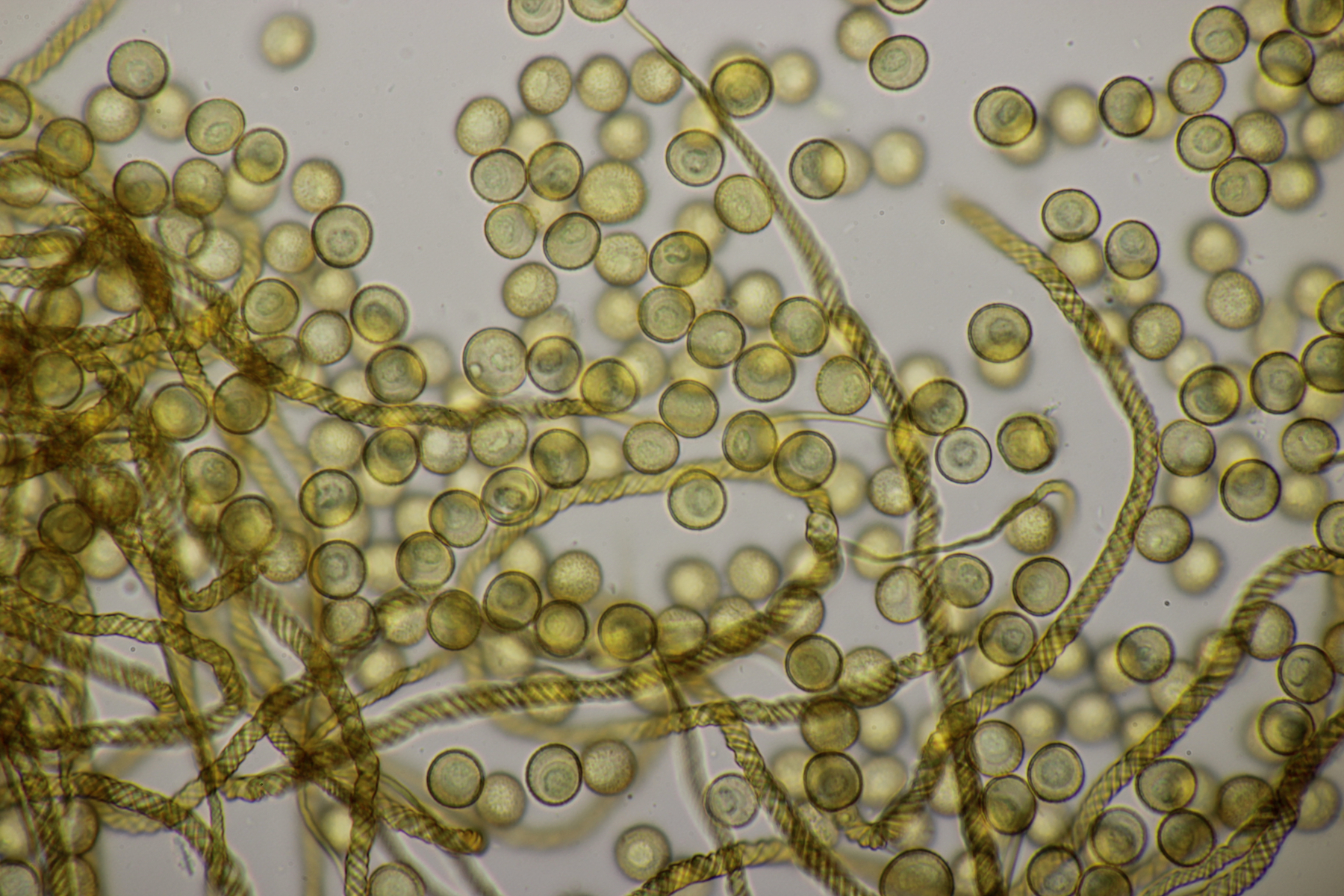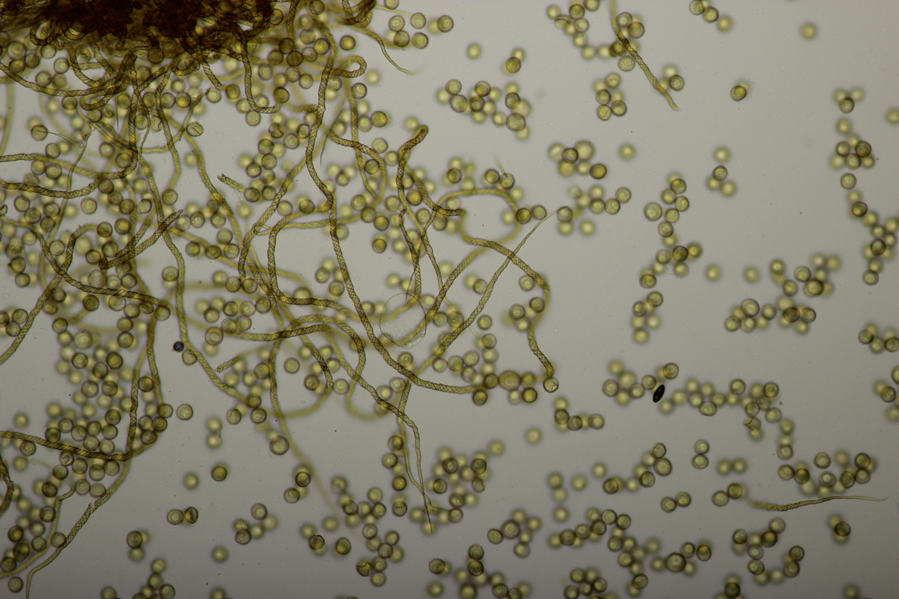 Man sieht auf Deinen Fotos, dass das Capillitium lang ausgezogenen Enden hat und die Sporen kein stark ausgeprägtes Ornament.