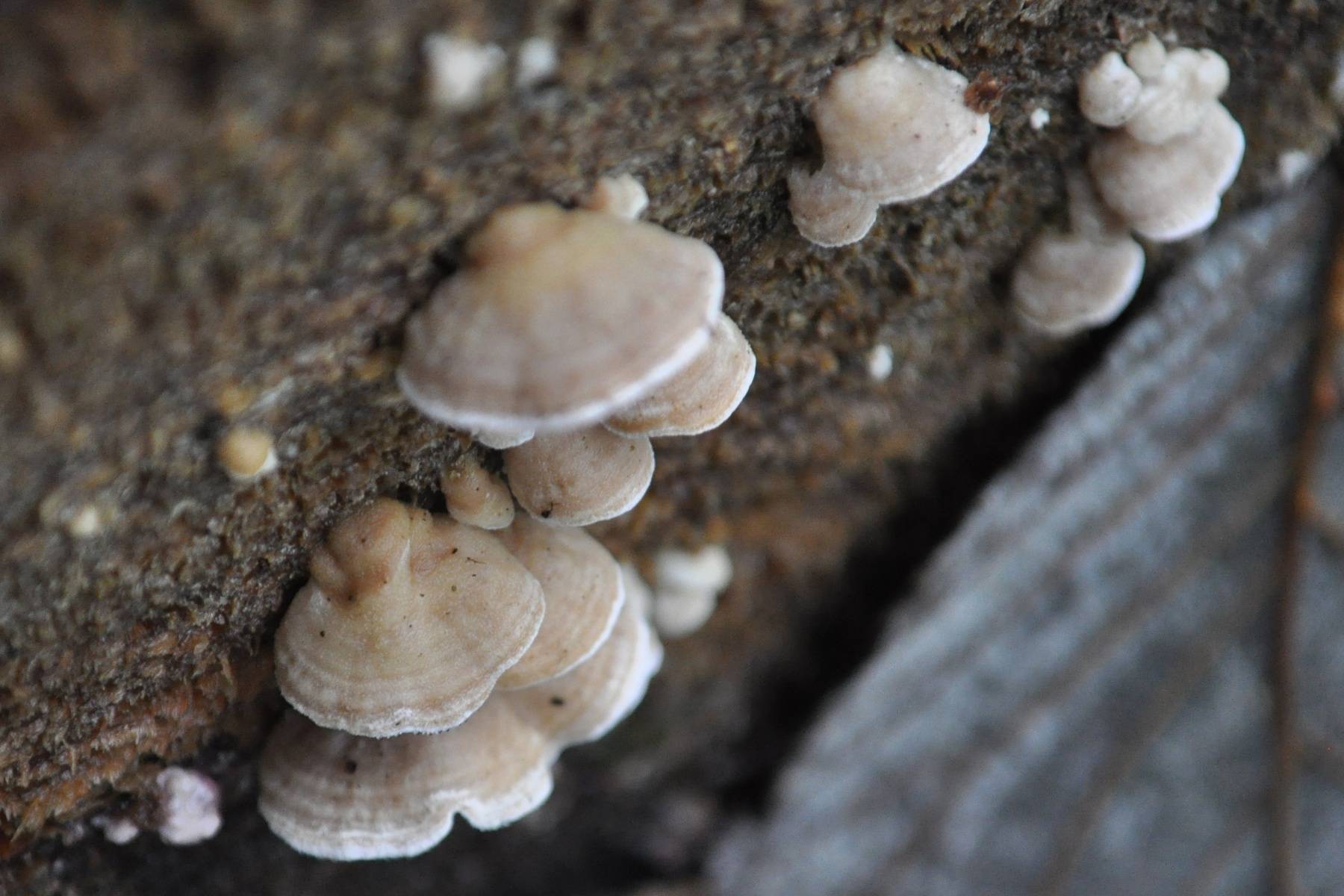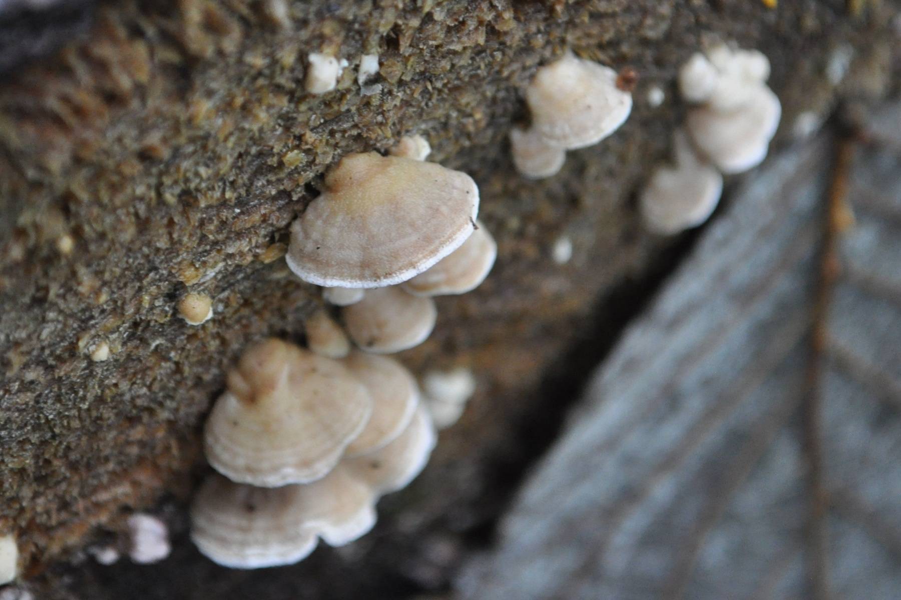 Bei 3 vermute ich eine Skeletocutis. Wenn zusammen mit dem Trichaptum könnte es S. carneogriseus sein, evtl. auch S. amorpha.