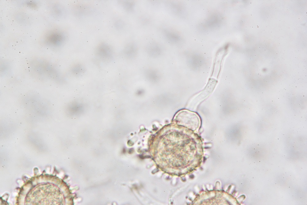 Unter dem Mikroskop hat sich dieser Befall als Hypomyces cervinus herausgestellt und neben den normalen Konidien noch interessante Aleuriosporen besitzt.