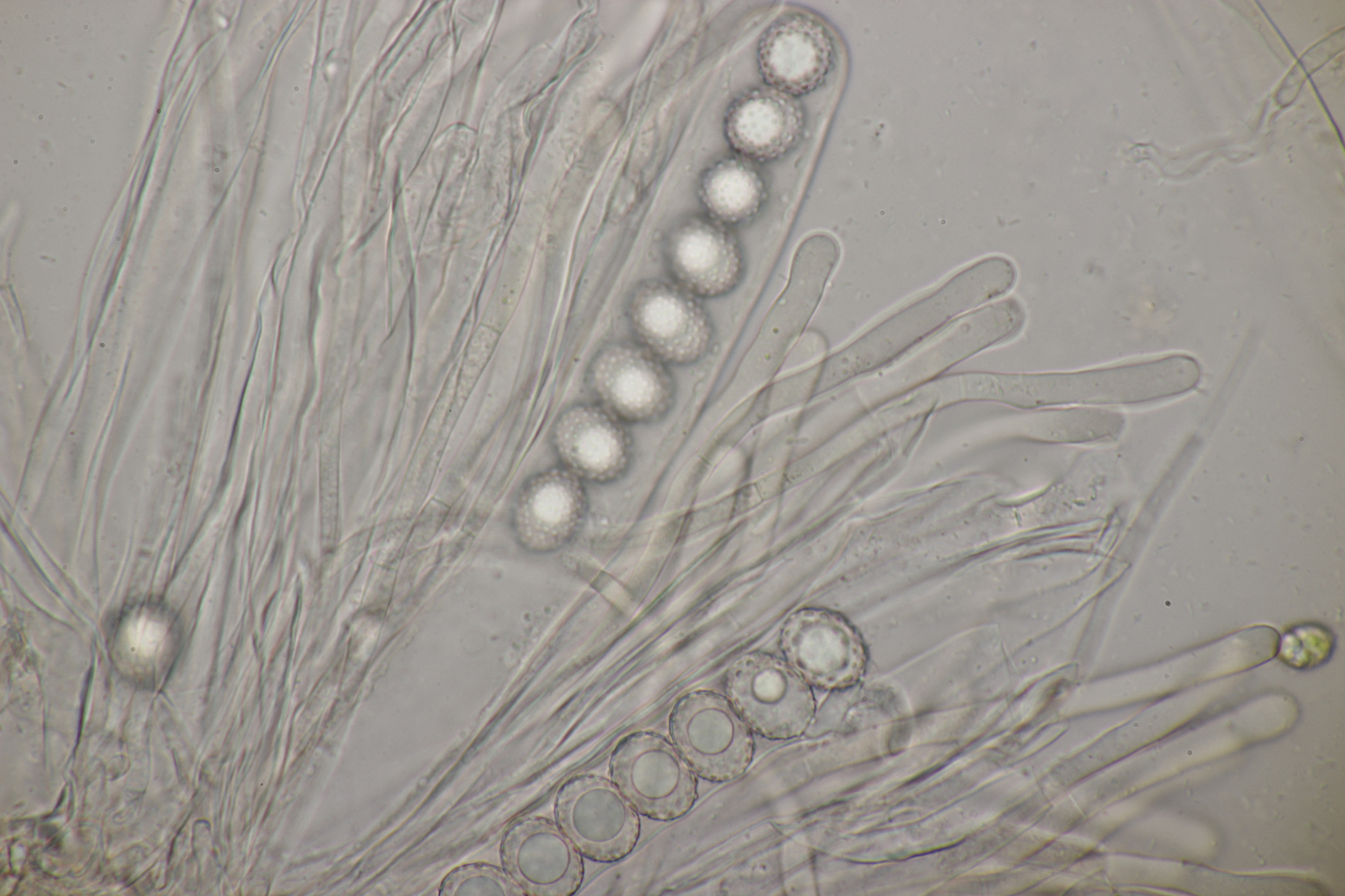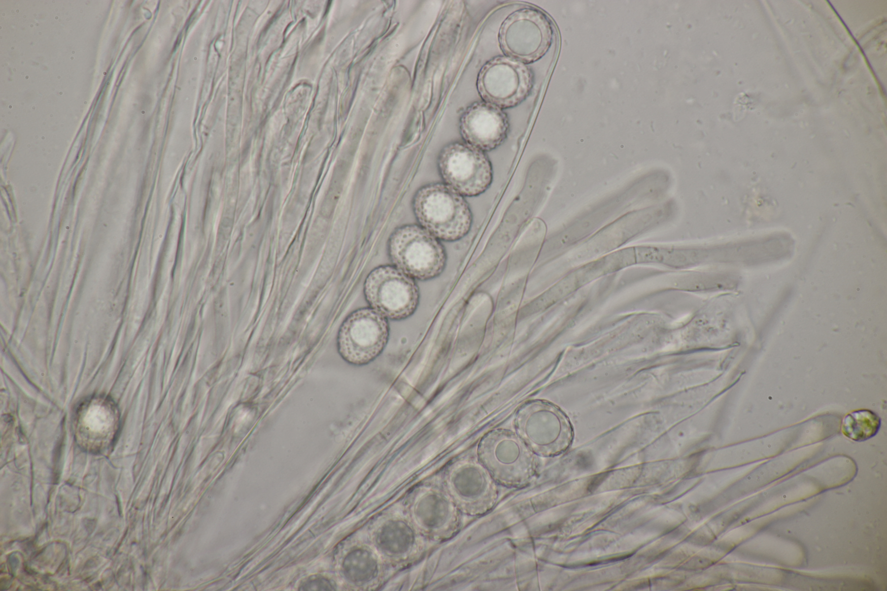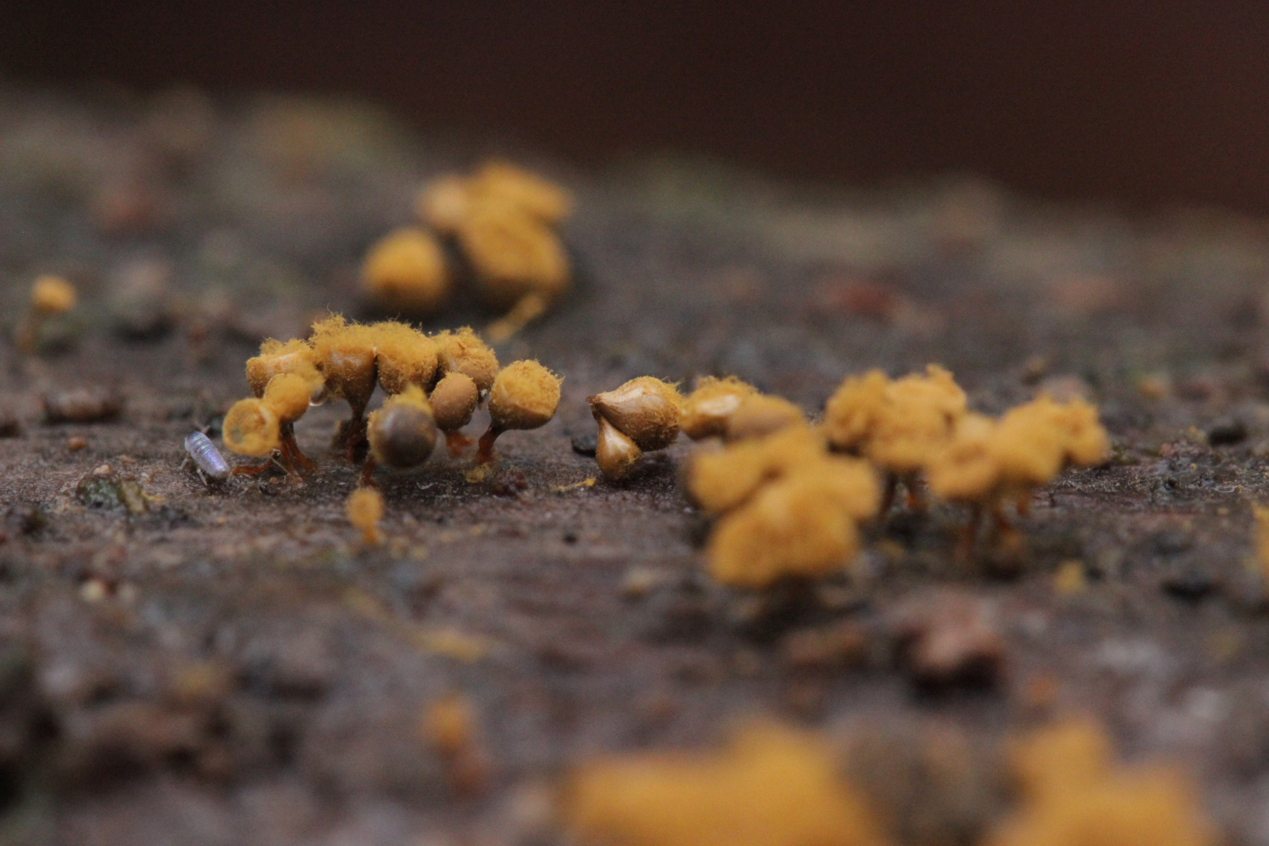 8. Trichia mit mehr als 2 Spiralleisten, langen Elateren und Stielen. Eine Netzzeichnugn auf der Peridie kann ich nicht erkennen, womit ich bei T. decipiens lande.