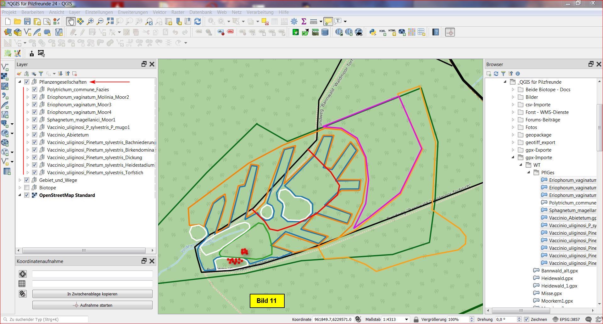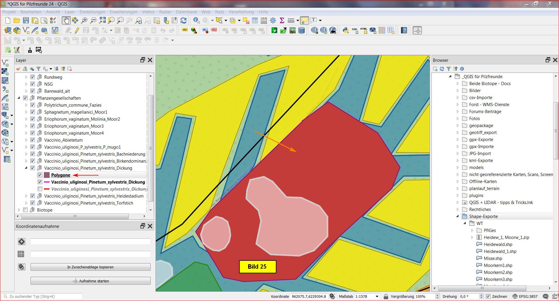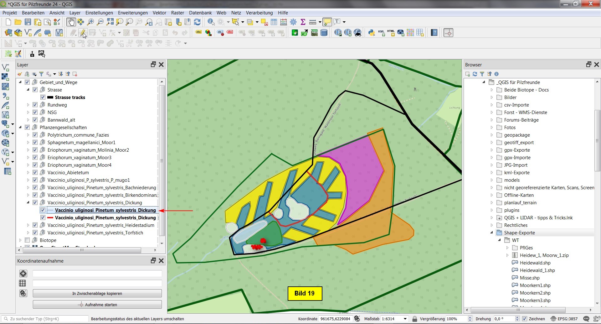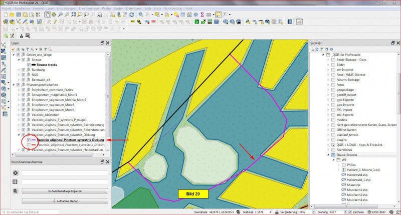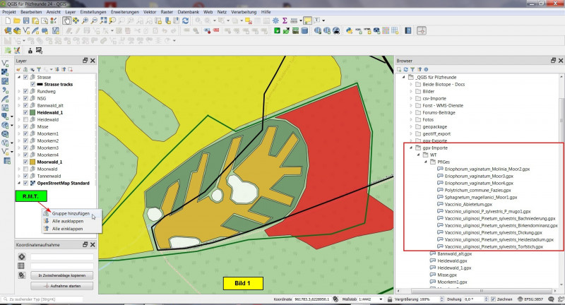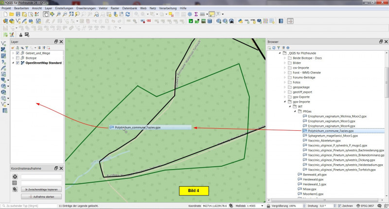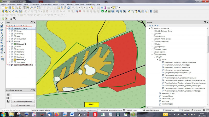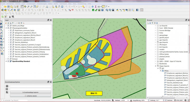 Heute soll es also darum gehen, die Pflanzengesellschaften des Kartierungsgebietes als einzelne Layer in unser Projekt zu integrieren.