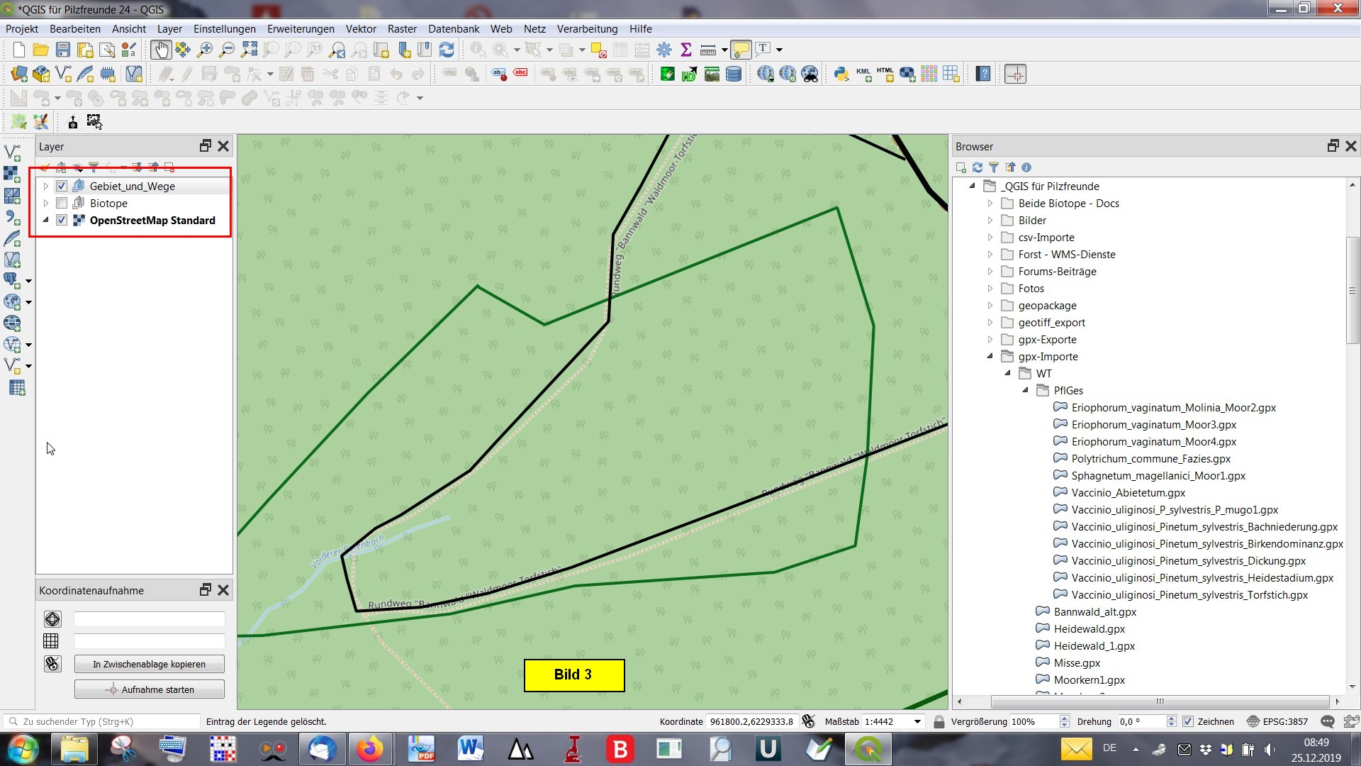 Dazu habe ich deren Begrenzungslinien in der BaseCamp-Software erstellt und im Projektordner \_QGIS für Pilzfreunde\gpx-Importe\WT\PflGes\ als gpx-Dateien abgespeichert. Diese gpx-Dateien stelle ich hier zum Nachvollziehen in komprimierter Form zur Verfügung: PflGes.zip