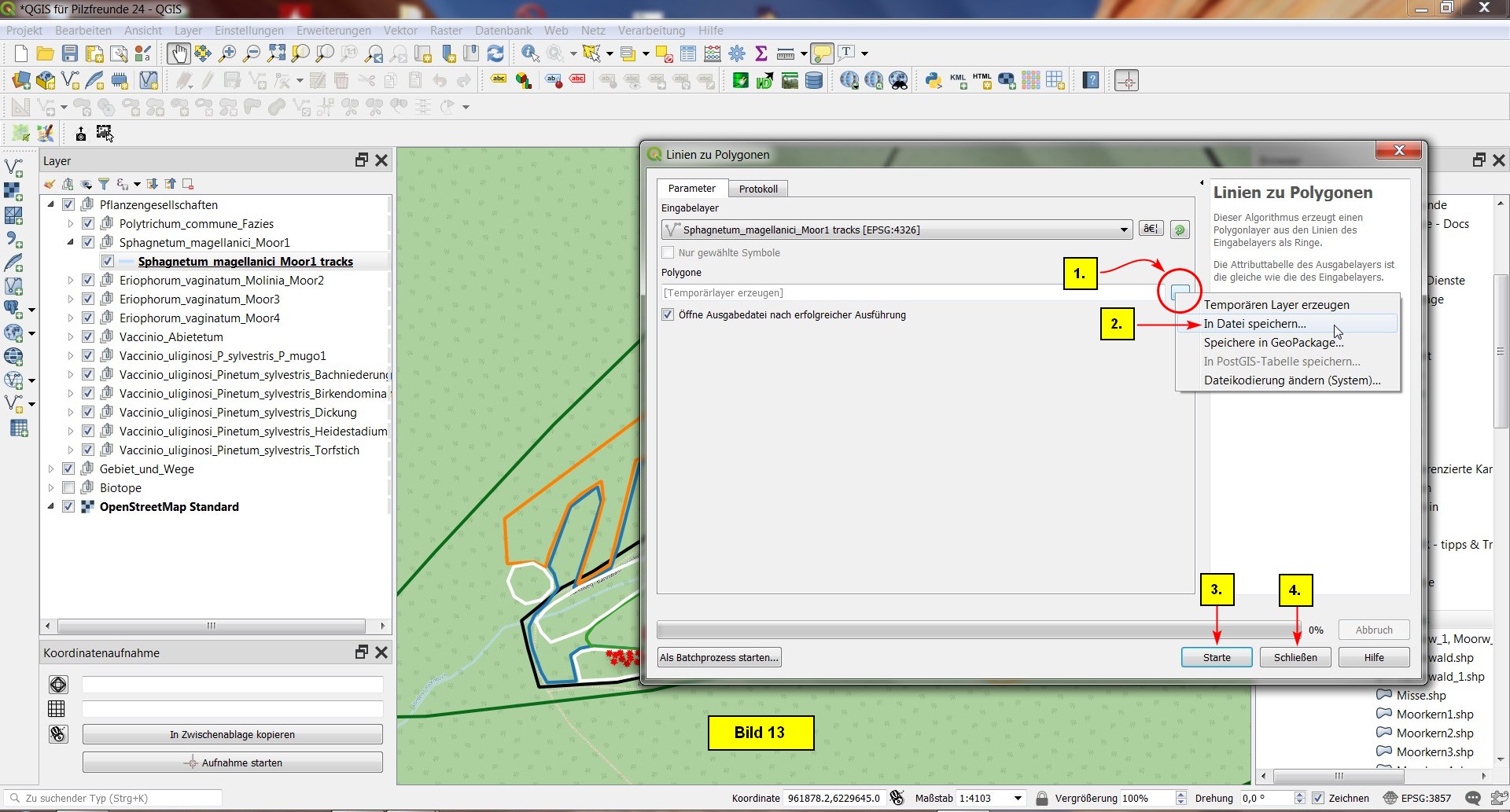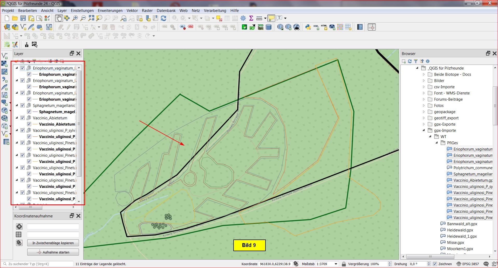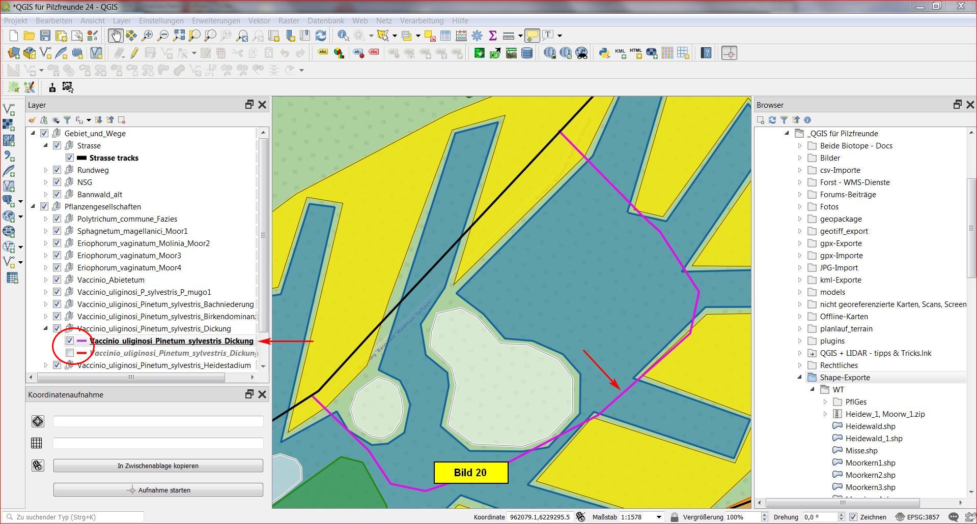 Das Layer Polytrichum_commune_Fazies ist ein Punktlayer, d.h. es muss im Dialog waypoints selektiert werden!