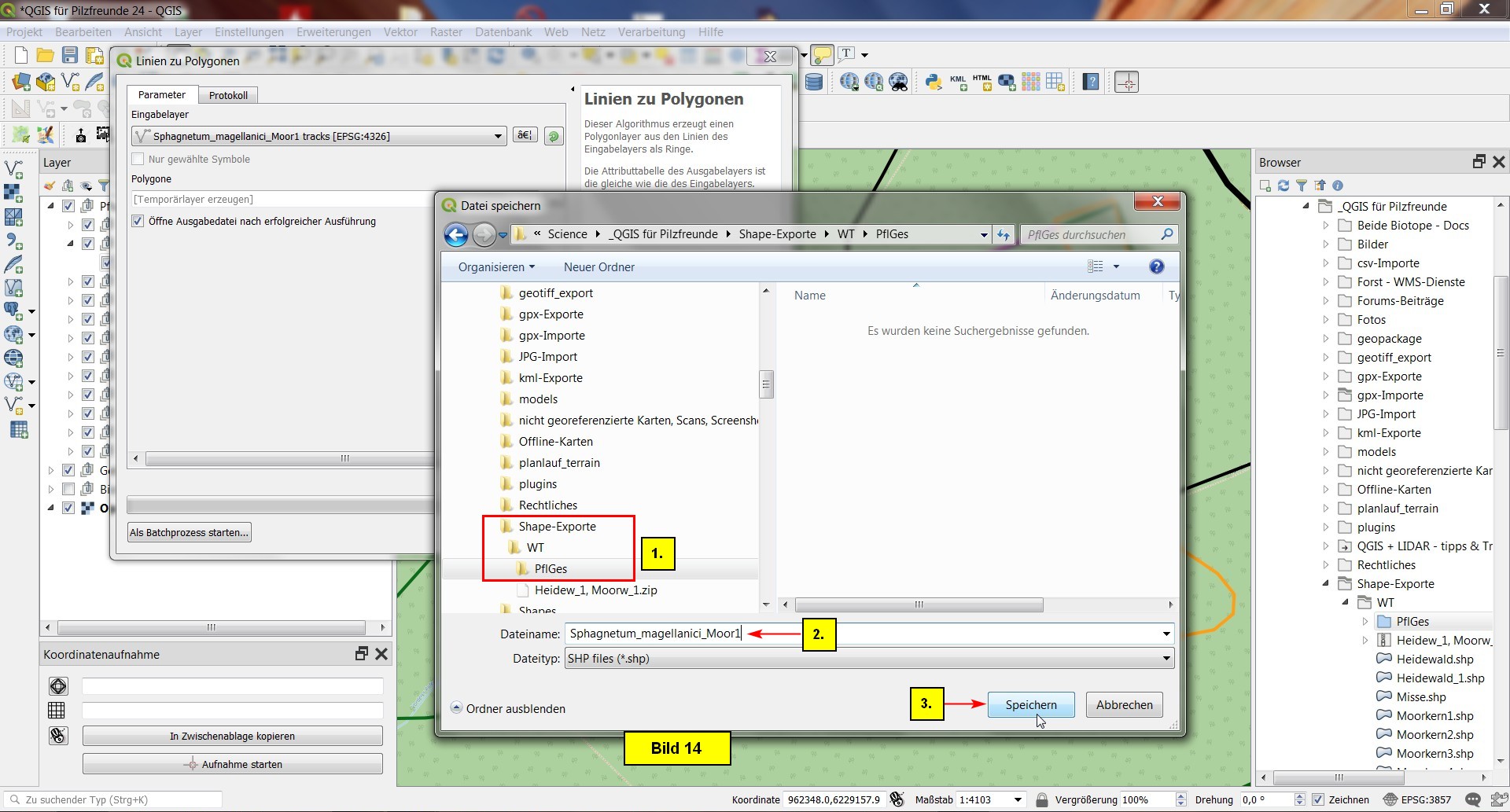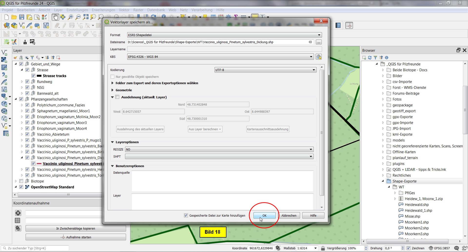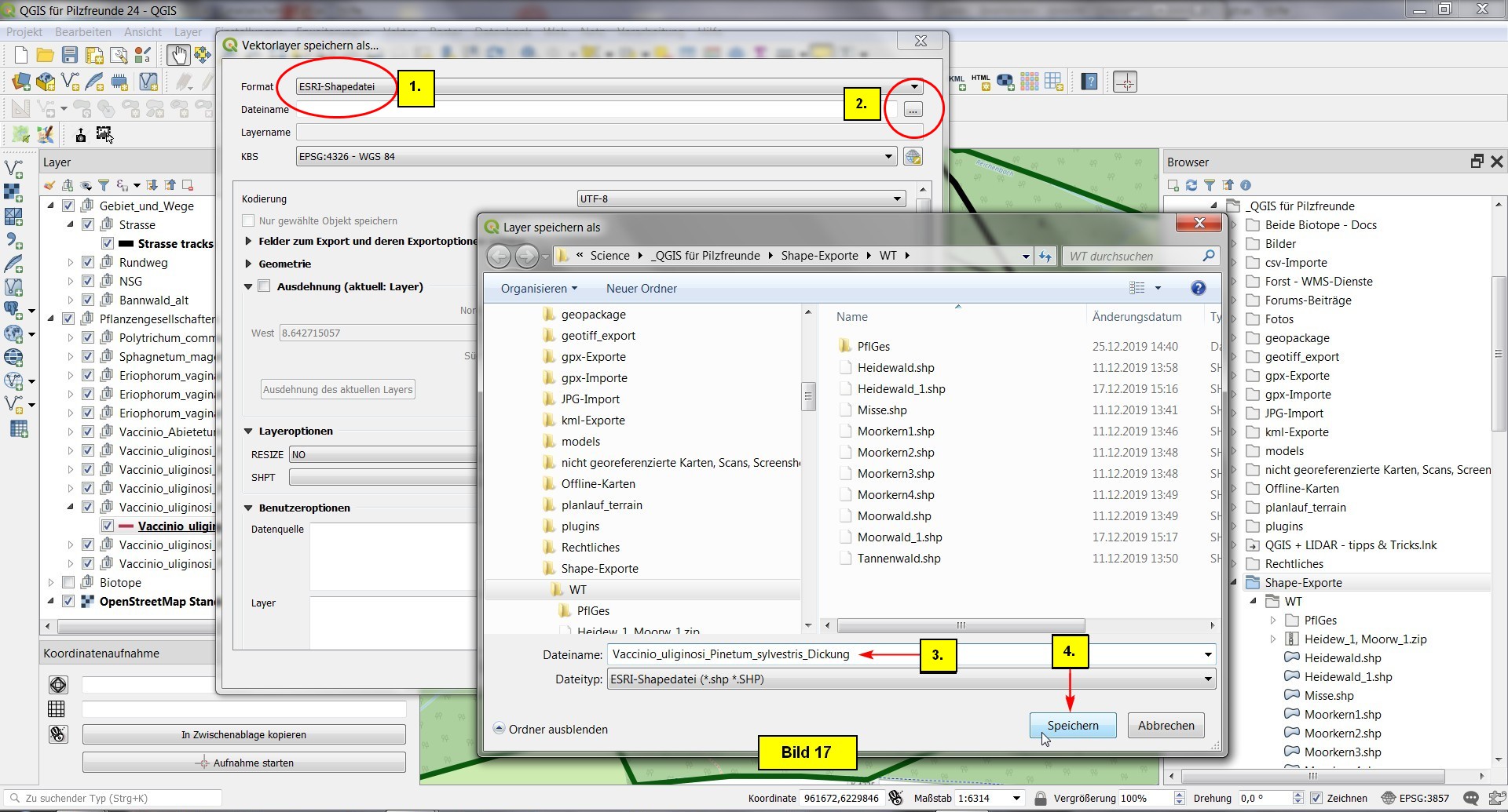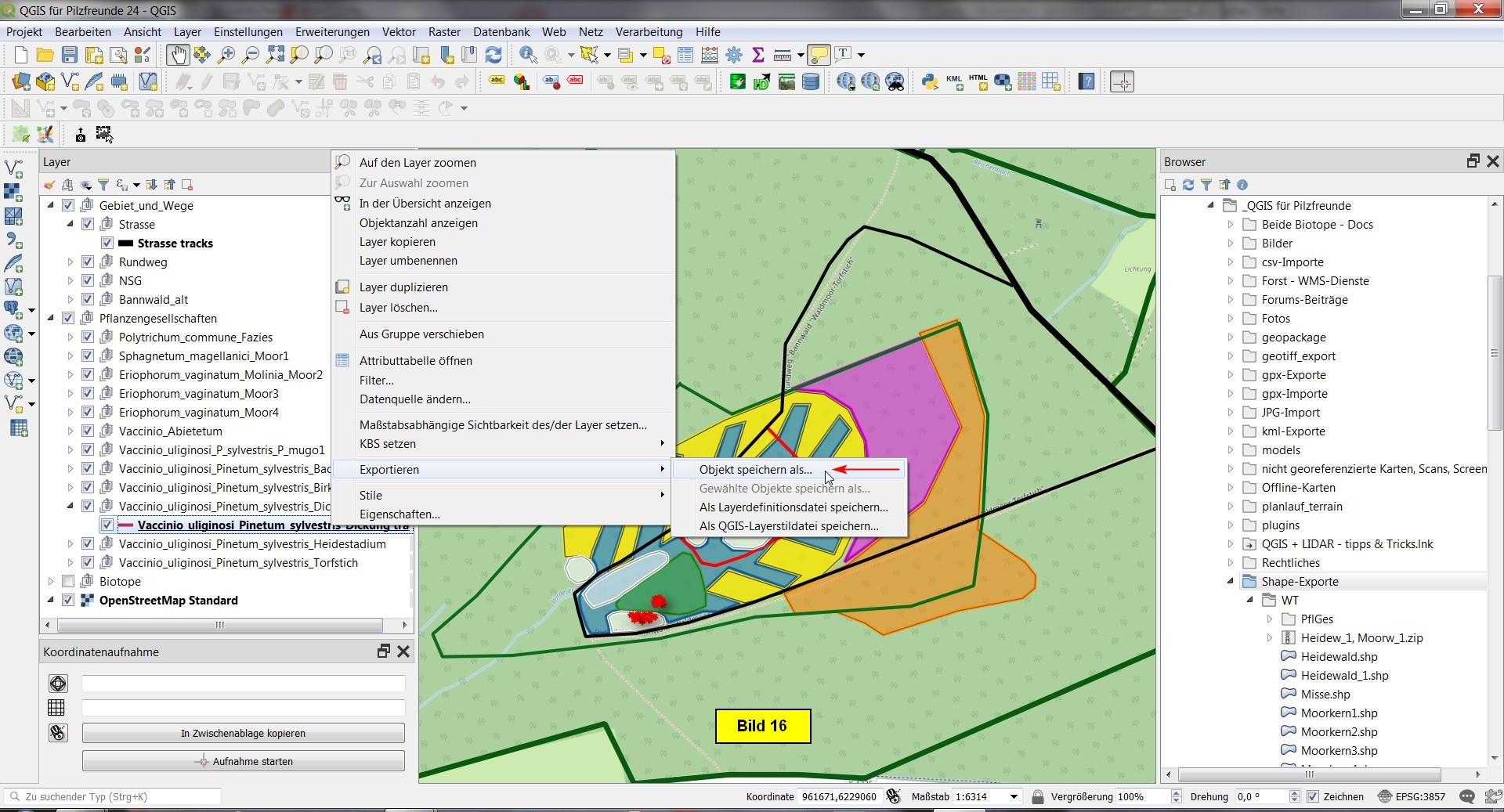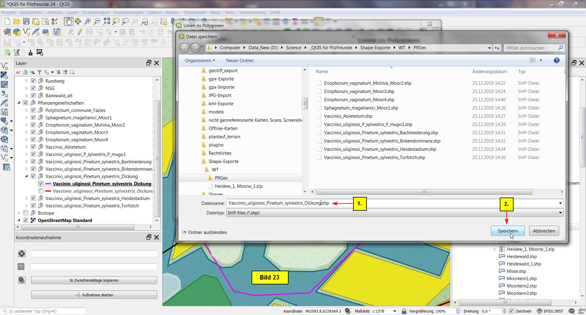 Abschließend speichern wir das Projekt als QGIS für Pilzfreunde 24.qgs im Projektordner ab.
