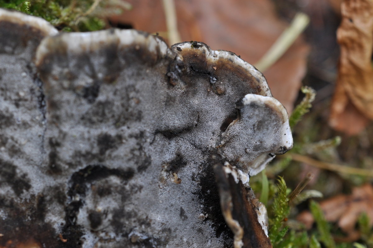 Da wär's durchaus mal interessant, ein paar Fruchtkörper im Schnitt ansehen zu können - vor allem wegen der Form, ob die von einer dicken Ansatzstelle mehr oder weniger gleichmäßig dreieckig zulaufen.Entscheiden wollte ich mich da jetzt nicht zwischen Trametes ochracea und versicolor, eine der beiden ist das aber schon.