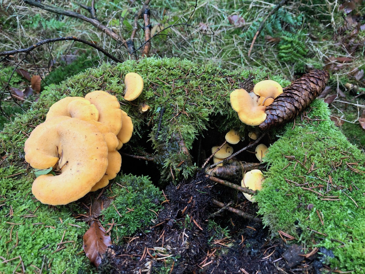 Orangeseitlinge finde ich in diesem Winter oft. Ein schönes Leuchten in der lichtarmen Zeit.