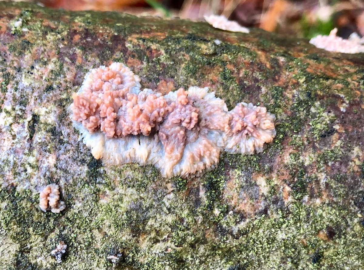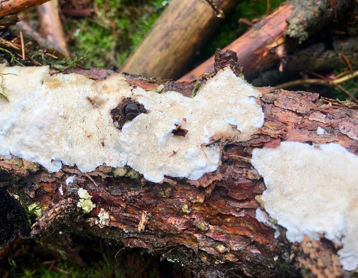 Dieses resupinate Rindengeschwurbel umhüllte eine Fichte. Es soll tatsächlich Menschen gebend die diesen Pilzen einen Namen geben können.