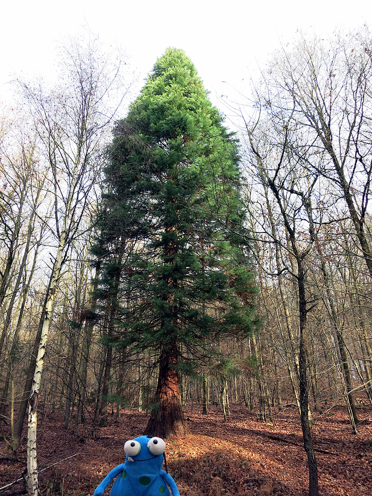 In dem Wald, in dem ich heute unterwegs war, gibt es genau einen Mammutbaum. Er wurde vor ca. 45 Jahren hier gepflanzt. Den Grund kenne ich nicht.