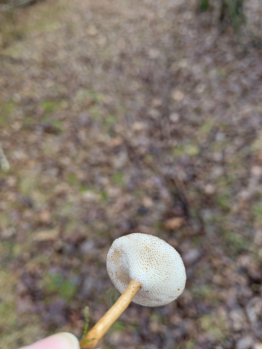 Er fasste sich für einen Pilz sehr fest und zäh an und hatte eine interessante Unterseite.