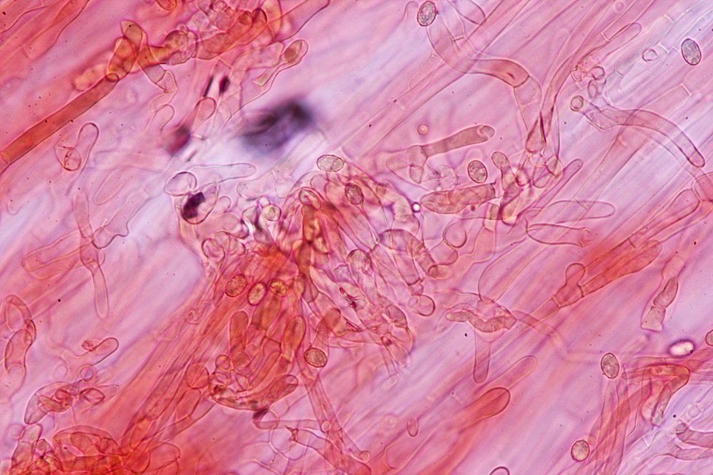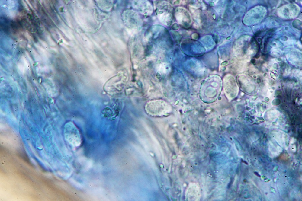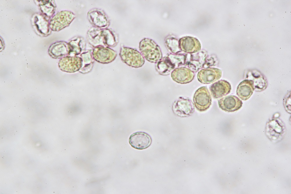 15. Reaktion auf Lugol, ich würde sagen die Sporen sind leicht Amyloid