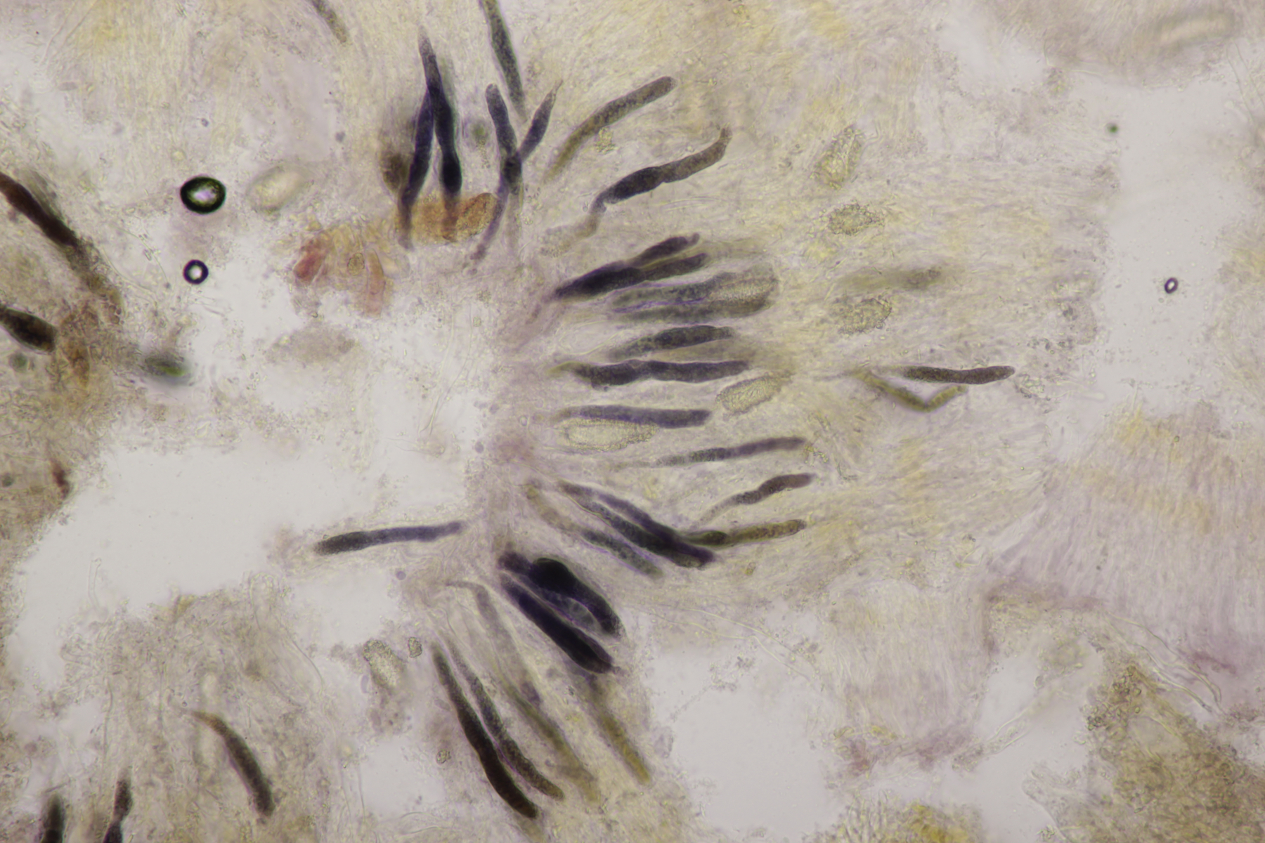 Die Nummer 6 habe ich jetzt noch mal genauer angeschaut, u.a. auch in Baumwollblau, wo sich cyanophile Sporen und Basidien zeigten. Das war zwar alles sehr wenig fotogen, deshalb keine Bilder an dieser Stelle, aber ich denke, daß der Fund damit als C. eichleri eingetütet werden kann.