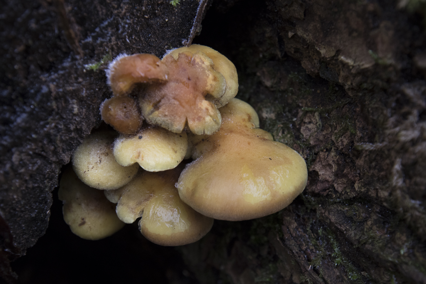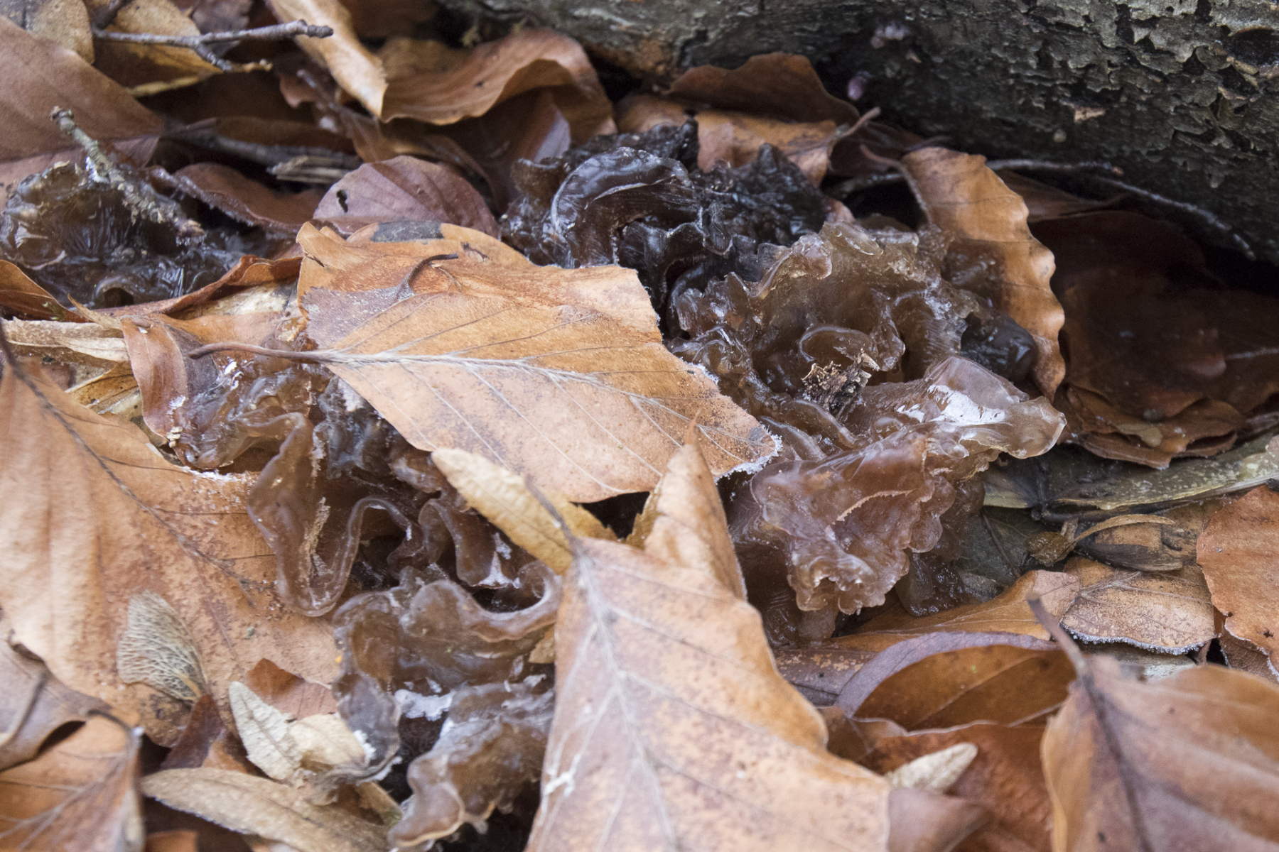 3. Diese hier war heruntergefallen oder - getreten und lag im Laub, ein kleines Exemplar wuchs noch am Totholz daneben.