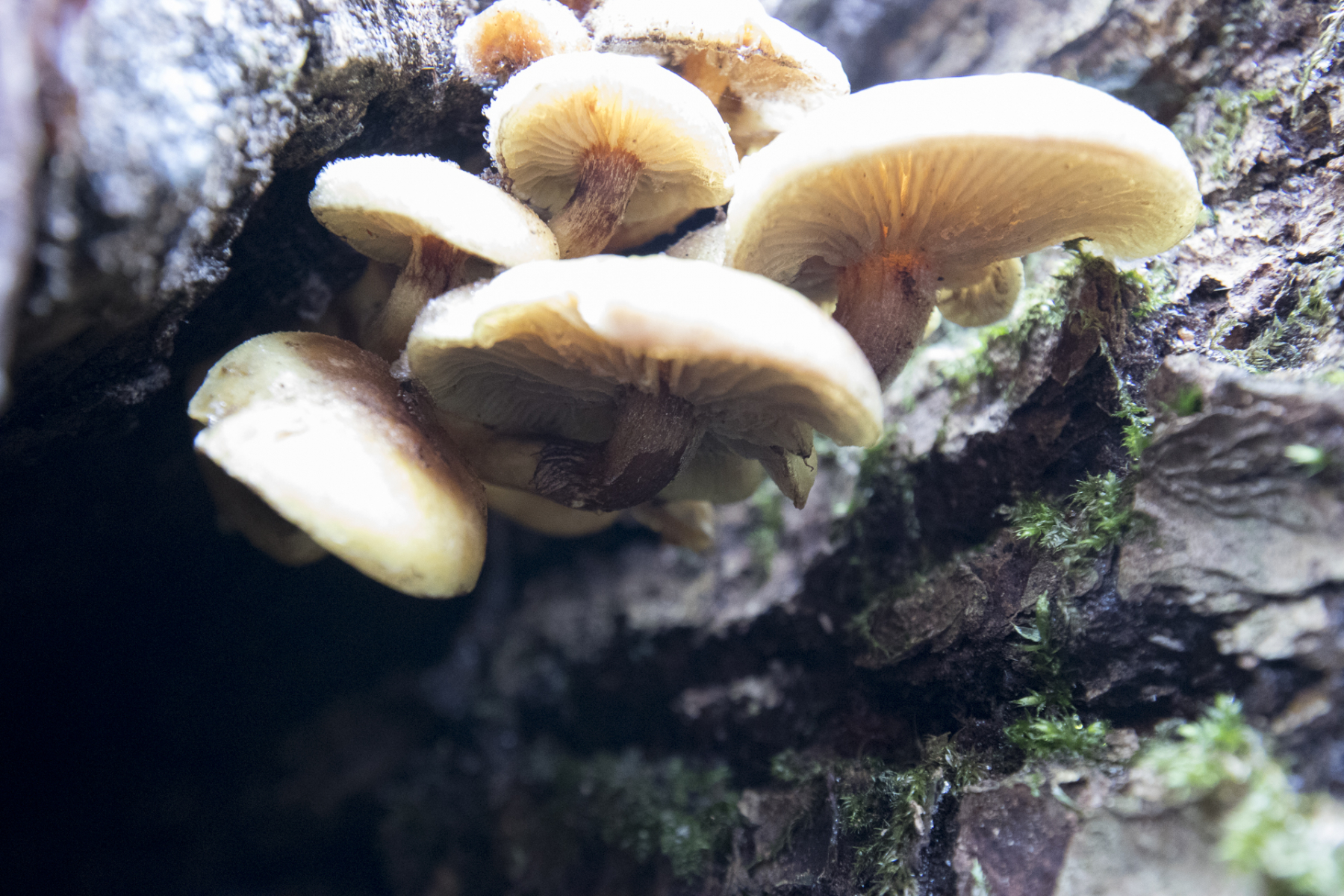 3. Diese hier war heruntergefallen oder - getreten und lag im Laub, ein kleines Exemplar wuchs noch am Totholz daneben.