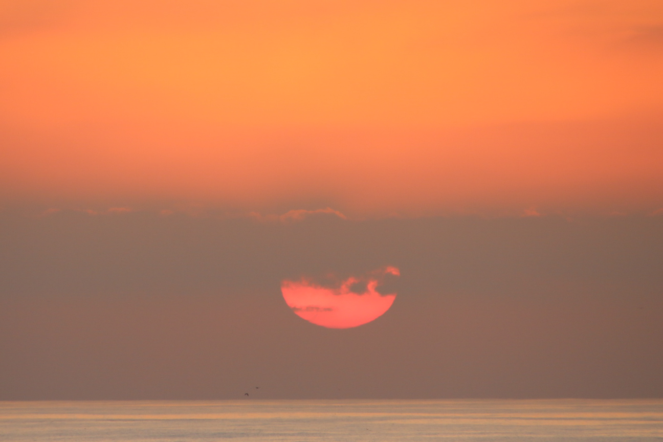 Die Küste ist hier in der Regel Steilküste, so dass man das Meer nur selten sieht. Zum Fotografieren des Meers muss man anhalten und vorsichtig Richtung Kante fahren: