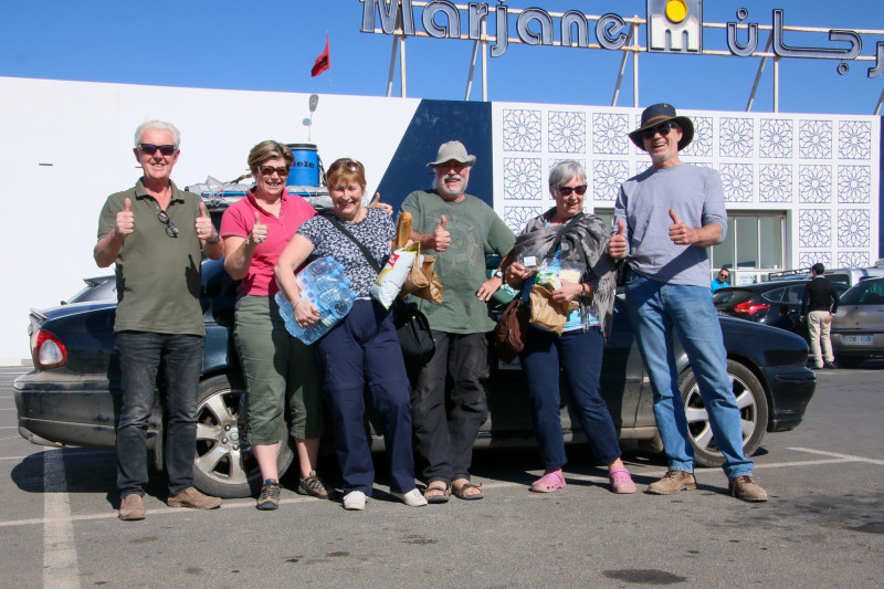 • Schon wieder ein harter Tag. Der "Dark Disco Jag" hatte eigentlich nur noch einen brauchbaren Reifen. Um alles in Laayoune auseinanderzusortieren, brauchten wir wieder bis 13:00. Der vereinbarte Platz fürs Wildcamping war wegen Windstärke 5 bis 6 nicht vertretbar. Also A... zusammenkneifen und runter bis Dakhla. Dort haben wir ein wirklich brauchbares Hotel und sind jetzt zum Restaurantbesuch verabredet. Die Anderen drängeln schon.