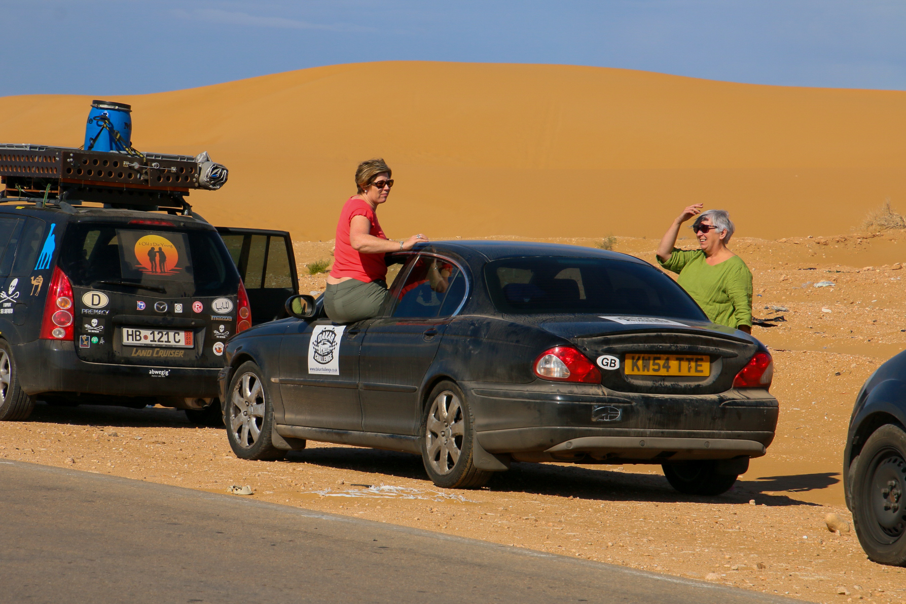 Hier ist gerade soviel zu tun, ein Jaguar hat schlappgemacht. Drei Ladies mit Gepäck müssen wahrscheinlich mitgenommen werden.
