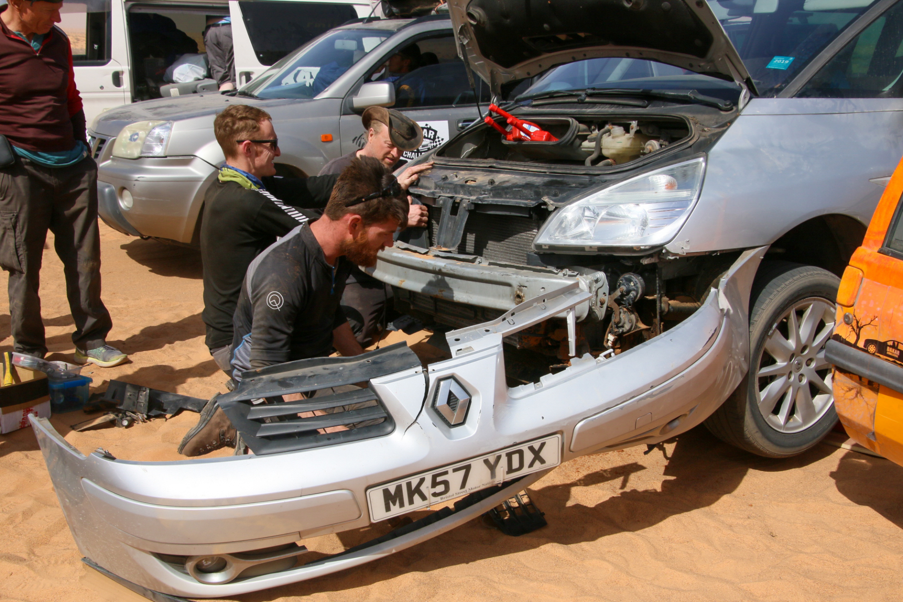Nick musste sein Dreirad bereits vor dem Start wegen Überhitzung aus dem Rennen nehmen. Er schloss sich mit ihm damals gänzlich unbekanntem Pete zu einem Zweiergespann zusammen. Colm musste seinen Suzuki bereits in Nantes final abstellen. Phil und Andi fuhren extra 100km zurück, um ihn aufzunehmen. Der Jaguar der 3 Amigos war ein paar Mal dicht vorm Verschrotten. Mit Hilfe der Gruppe läuft er immer noch, mittlerweile im Senegal. Der Espace wurde in aufwändiger 3 Stunden Reparatur mitten im Nirvana wiederbelebt, später abgeschleppt und steht jetzt mit positiver Prognose in einer Werkstatt in N'chott.