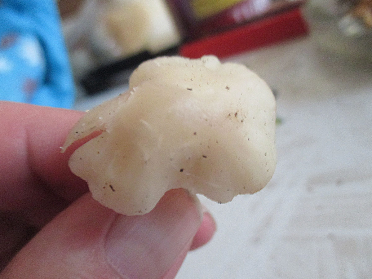 Stiel: weiß, glatt, beim Schneiden faserig