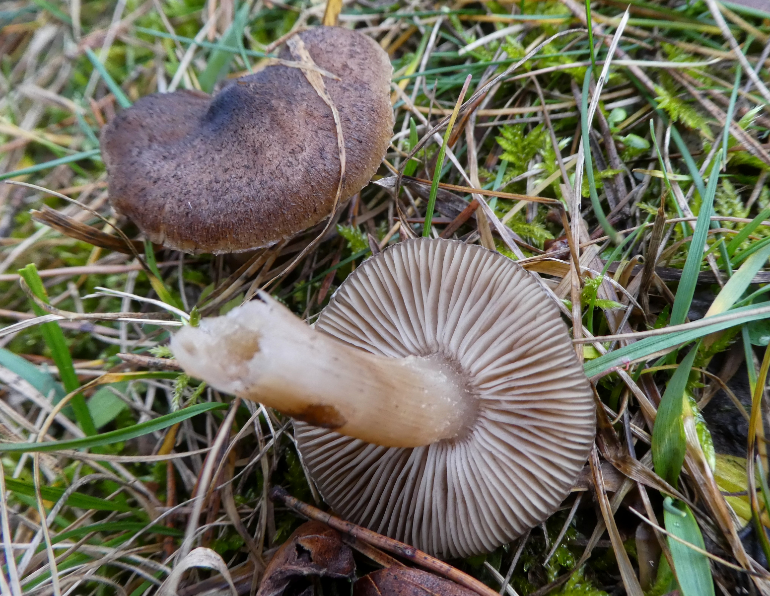 Pilz Nr. 9 aus dem 2. Beitrag wuchs auf einem steinigen Trockenrasenhang. In der Nähe gab es soweit ich mich erinnere nur Kiefern und Wacholder. Ich hänge einfach noch zwei Fotos an, denn ganz ehrlich, auf einen Erdritterling wäre ich da jetzt nicht gekommen. Aber nachdem ich da jetzt ein wenig nachgelesen habe ... :)