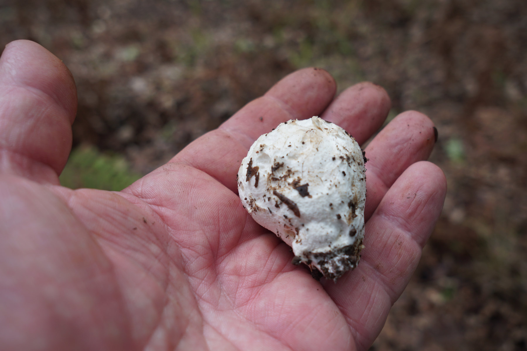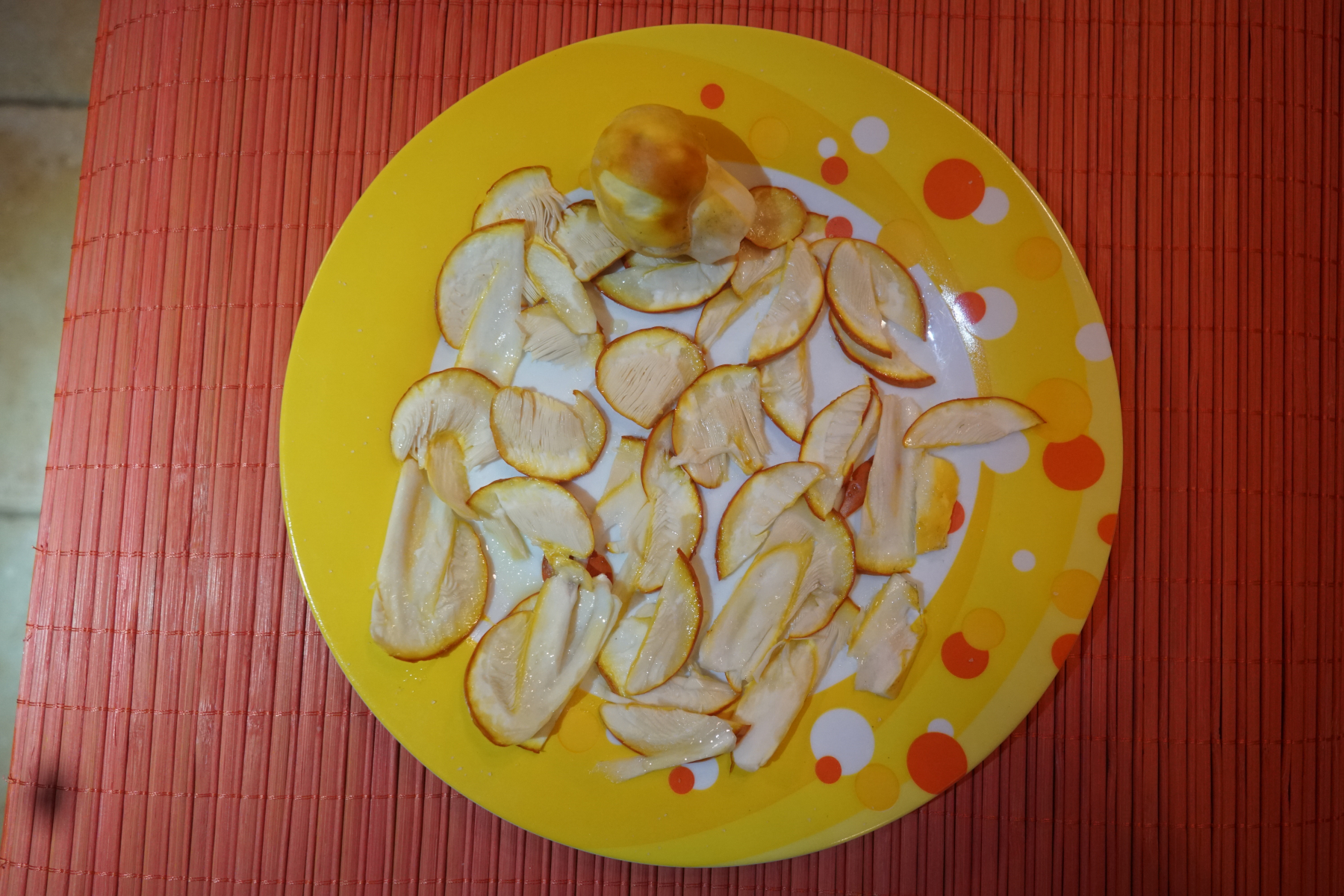Ich habe auch versucht ein Stück abzutrennen aber das ging nicht gut mit dem kleinen Pilzmesser.