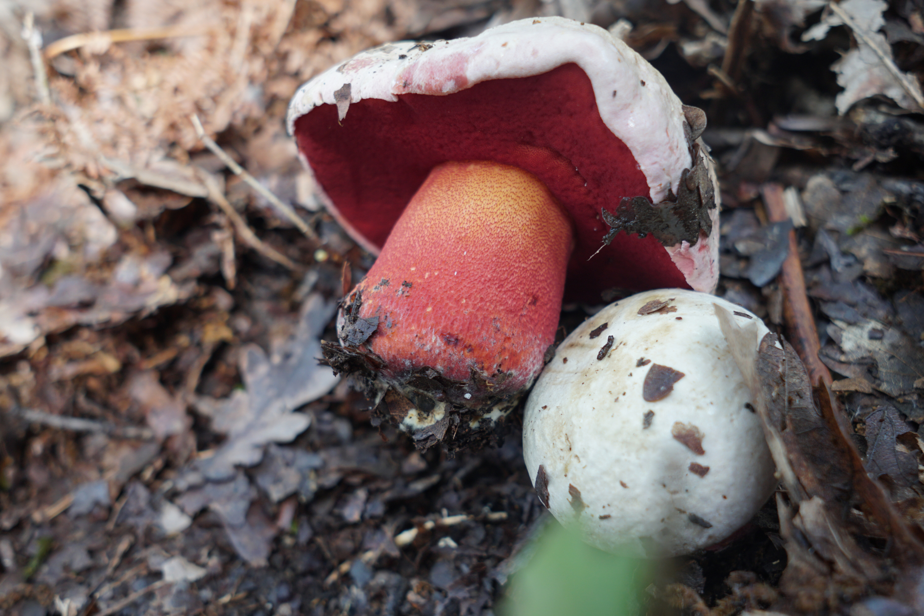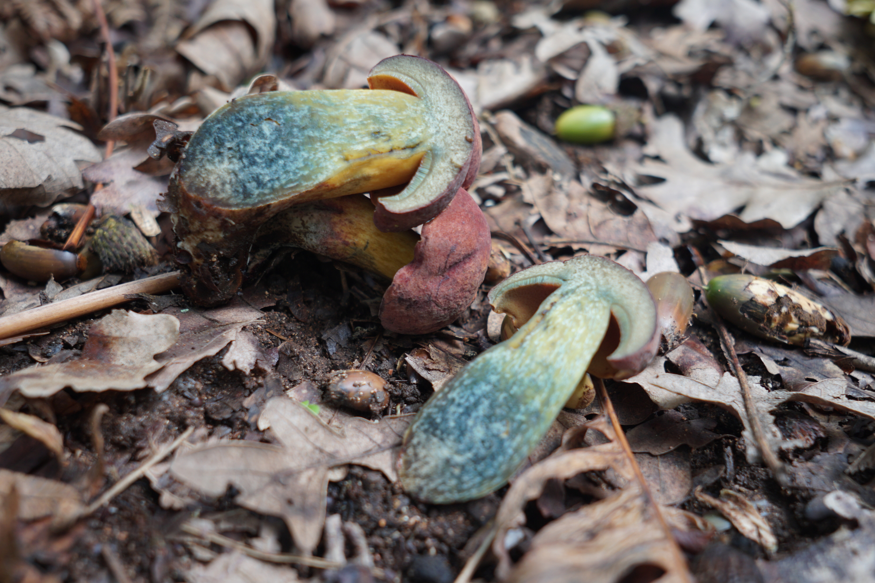 Nach den Kaiserlingen kommen ein glattstieliger Hexenröhrling (der krumm gewachsene) und dann vermutlich ein Suillellus comptus (weiß grad den deutschen Namen nicht). Der hat jung eher olivfarbene bis gräulich-rötliche Poren. Zumindest bestimme ich den so, kann natürlich auch falsch sein. ==Gnolm9
