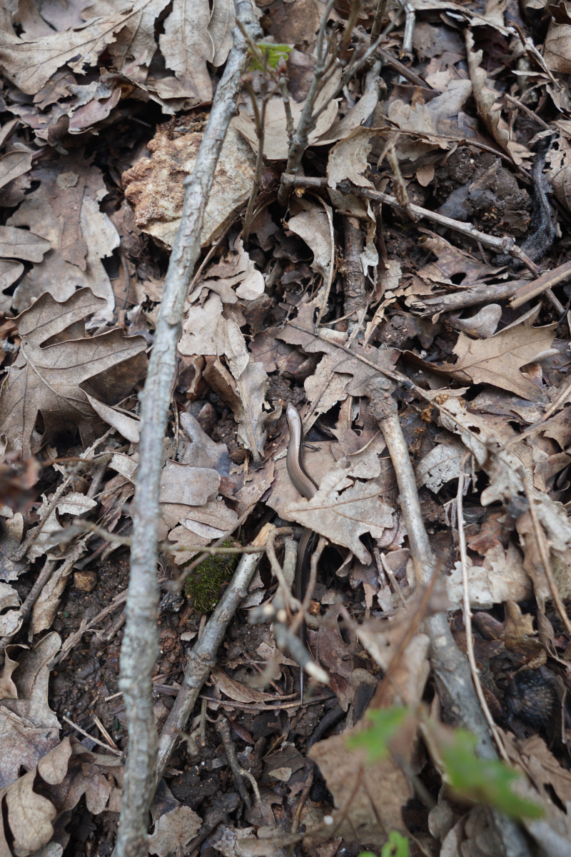 Des öfteren huschten vor uns im Laub zu klein geratene Blindschleichen, die aber keine sind.