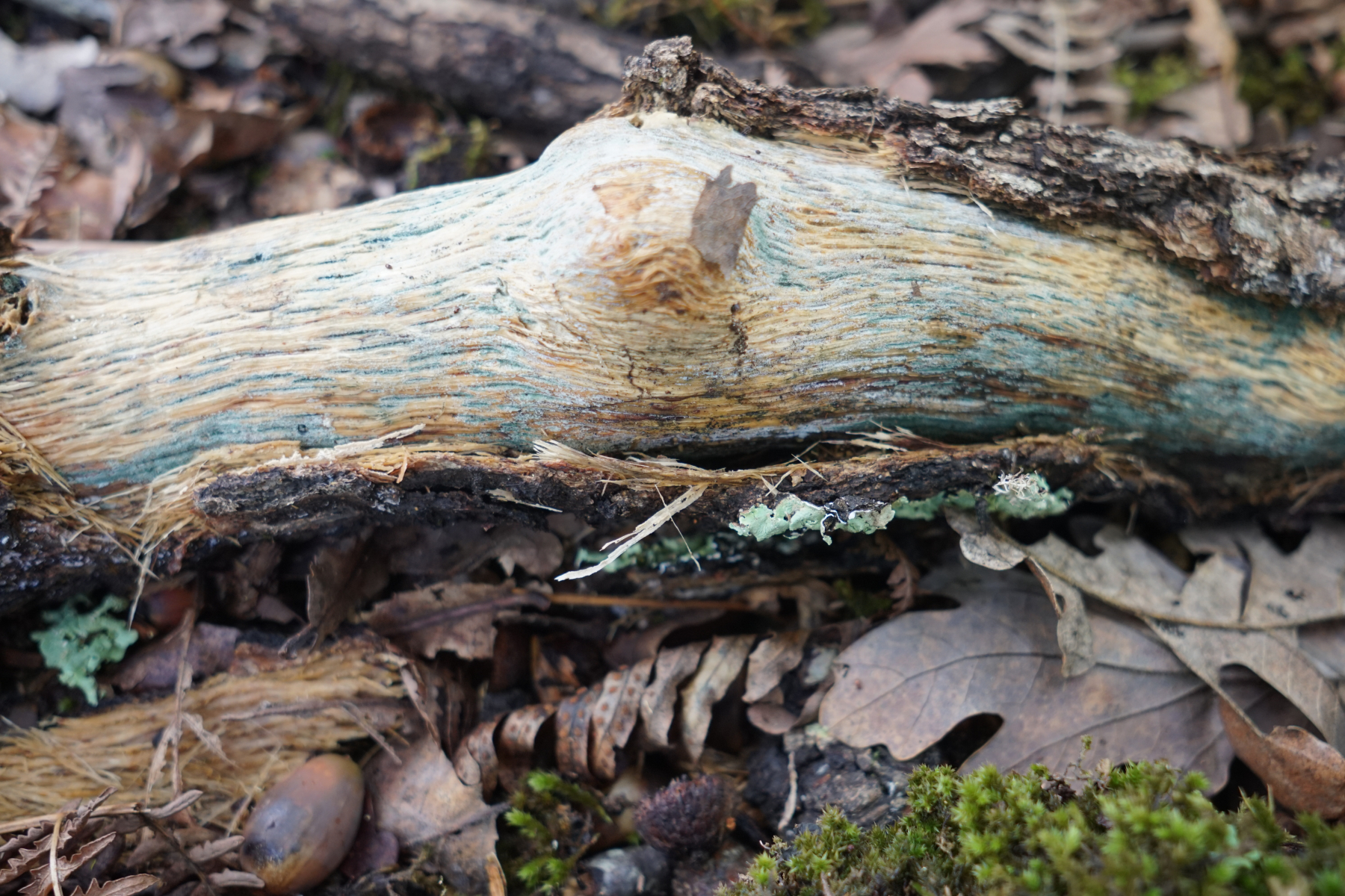 Hier kommt bei Gelegenheit mal einer der beiden wunderbaren Grünspan-Becherlinge zutage.