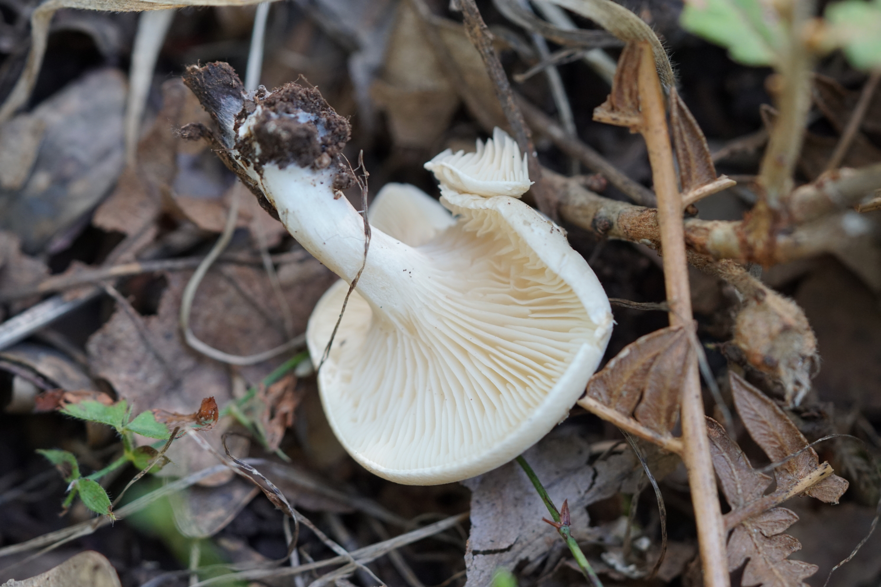 Der weiße nach Inocybe geophylla var. lilacina ist der normale Seidige Risspilz, Inocybe gephylla var. geophylla.