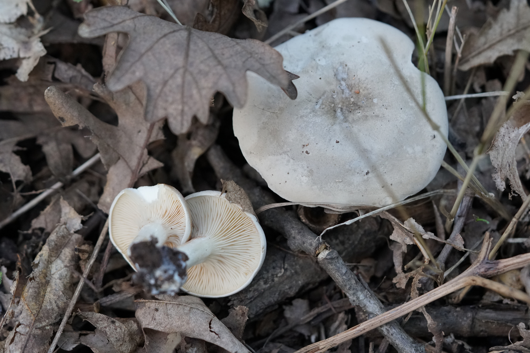 Der Trichterling danach (Bild ist nicht im Text eingebunden sondern am Ende des Beitrags) sollte wieder Clitocybe mediterranea sein, eventuell aber auch trulliformis oder was verwandtes. Für costata wäre er mir zu klein, zu regelmäßig und zu grau, für squamulosa ebenfalls zu grau.