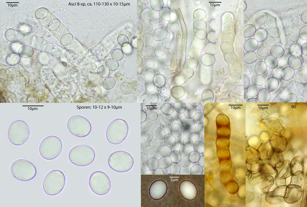 Die Hasenkugeln, die ich um Weihnachten rum in Kultur genommen habe, haben zunächst einen weißlichen Myzelfilz bekommen, den ich für einen Hyphomyceten hielt. Aber es bildeten sich keine Konidien, stattdessen entstanden weiße Kugel in diesem Hyphengeflecht. Die wurden später immer dunkler bräunlich bis violettlich. In dem Zustand hab ich dann auch Sporen darin gefunden und bei sehr genauem Präparieren konnte ich die Asci ausfindig machen, die sind sehr flüchtig und uniseriat. Erinnert mich insgesamt etwas an Chaetomium, aber sowohl die Art die Fruchtkörper auszubilden ist ganz anders und auch mit solchen Merkmalen hab ich noch nie was gesehen. Daher hab ich nicht mal ne Ahnung, was das für eine Gattung sein sollte. Sollte aber wohl zu den Eurotiomycetes gehören würde ich meinen.