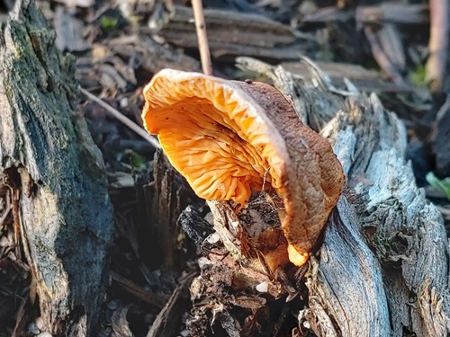 Wer bin ich? Gefunden an gehäcksltem Holz von Kiefer oder evt Fichte( ich glaub dort wuchsen nur Kiefern,. wurden nach Sturm ( der dort tabula rasa machte) alle gefällt und zt geschreddert, zugunsten einer neuen Schonung, er wuchs an einem Stück das ziemlich klein war und wirkte wie ein eingetrockneter Seitling, Laubholz kann ich jedoch ausschließen. Beim Rumsuchen kam ich auf nichts was wirklcih paßt. lieder ist das das einzige was ich an Fotos hab, da ich erst zuhause drauf kam, daß mich das Pilzchen doch mehr interessiert, als gedacht, er hatte sicher einen trockenschaden