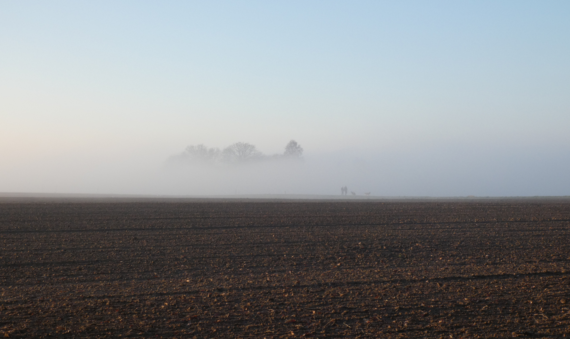 32. Letzter Blick auf die Landschaft aus Erde, Himmel und Nebel vor der Nachhausefahrt. Unser Auto wartet schon am Feldrand.