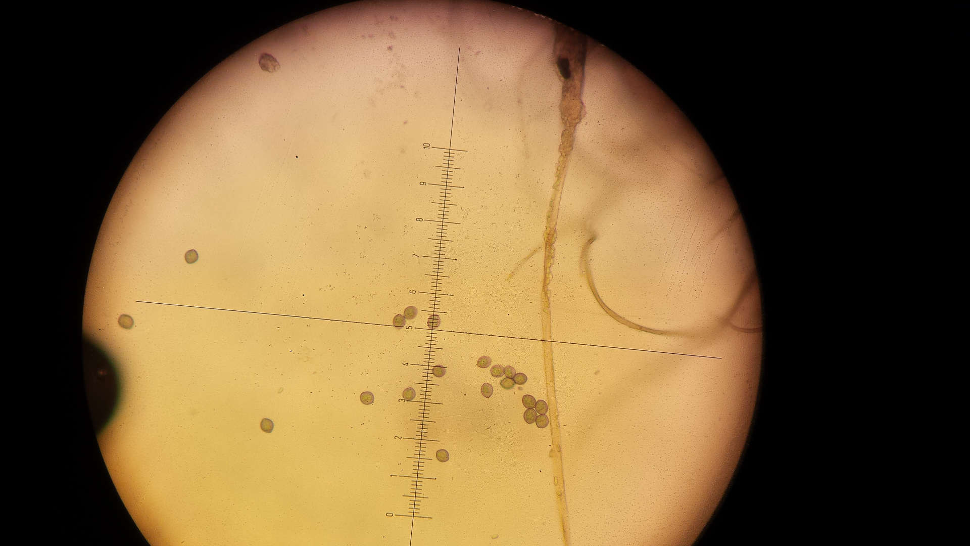 Dieses Chatomium vom Namib-Pferd würde ich nach doveri und von Arx, Guarro & Figueras gern Ch. globosum nennen. Sporen passen mit der Sporentafel im letzeren sehr gut, Haare sprialig, braun, nicht verzweigt, Sporen etwa 11 µm lang, 9 µm breit. Es gibt noch eine subaffine, aber dazu kenn ich kenne ich keine Bilder.