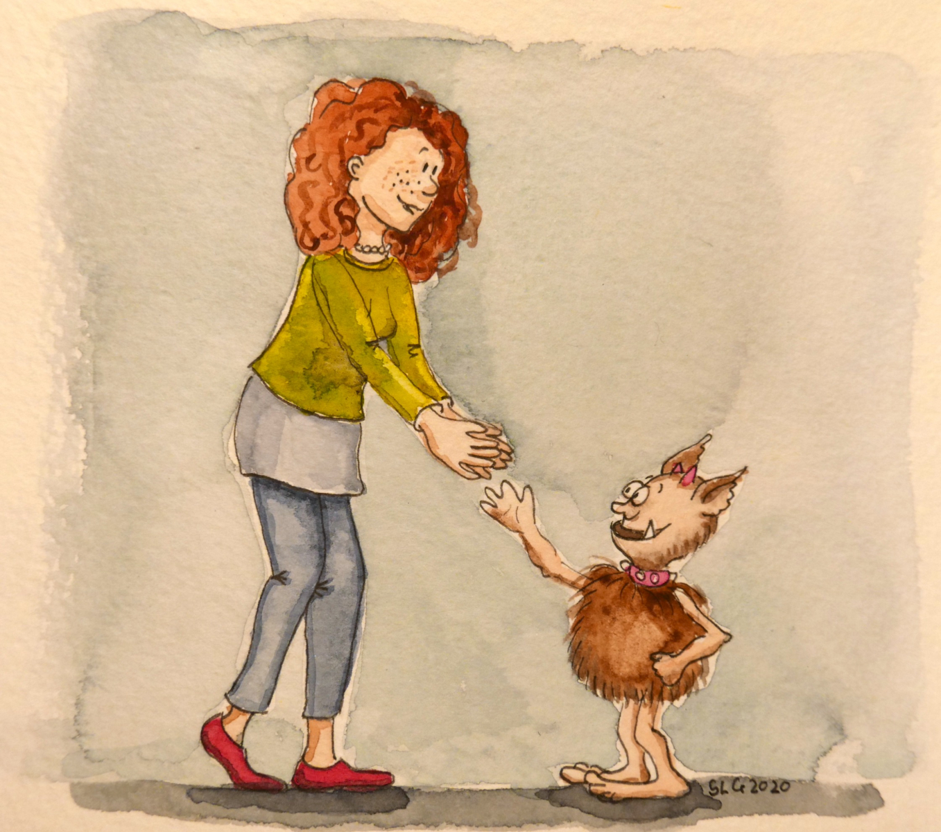 Nachdem unser Staubpelzchen nun gegessen hatte, es ihm warm war, es ausgeschlafen hatte und nach dem Bade frisch und duftend war, wollte es sich Tuppie vorstellen. Der Gnolm streckte ihr artig sein kleines Händchen entgegen: