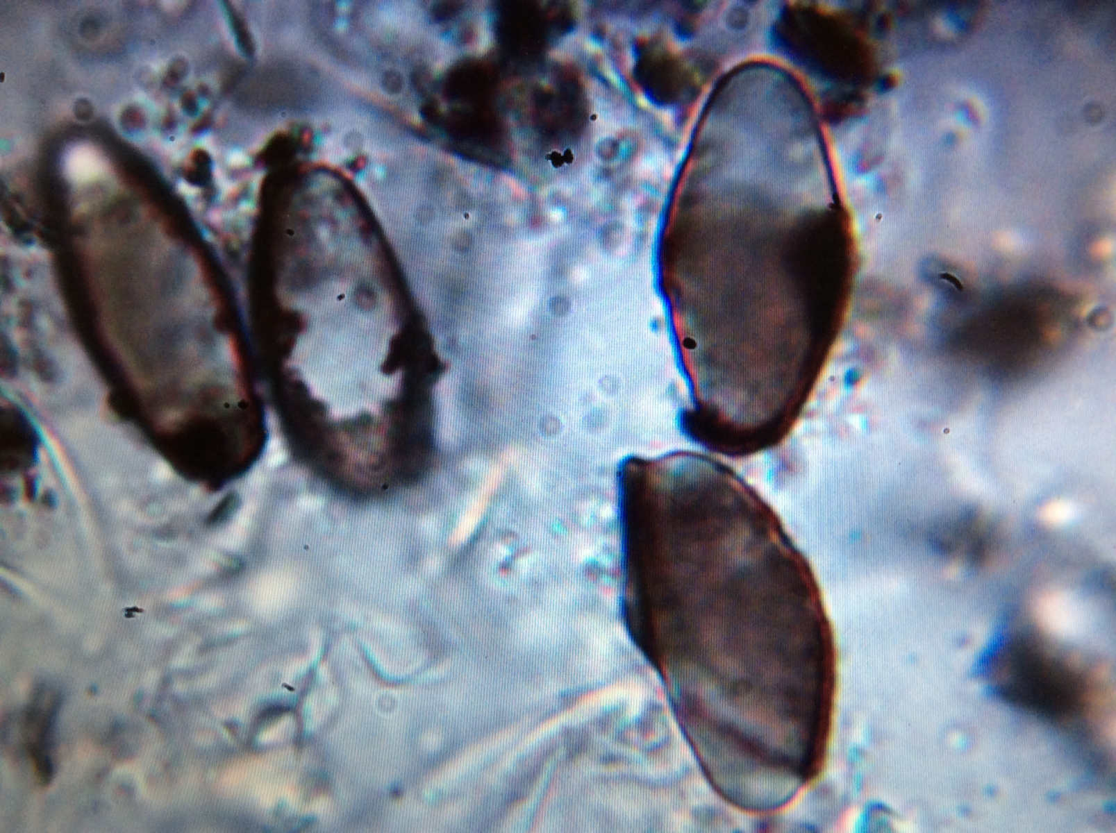 Sporengröße und das auffällige violette intrazelluläre Pigment sprechen für diese Art.