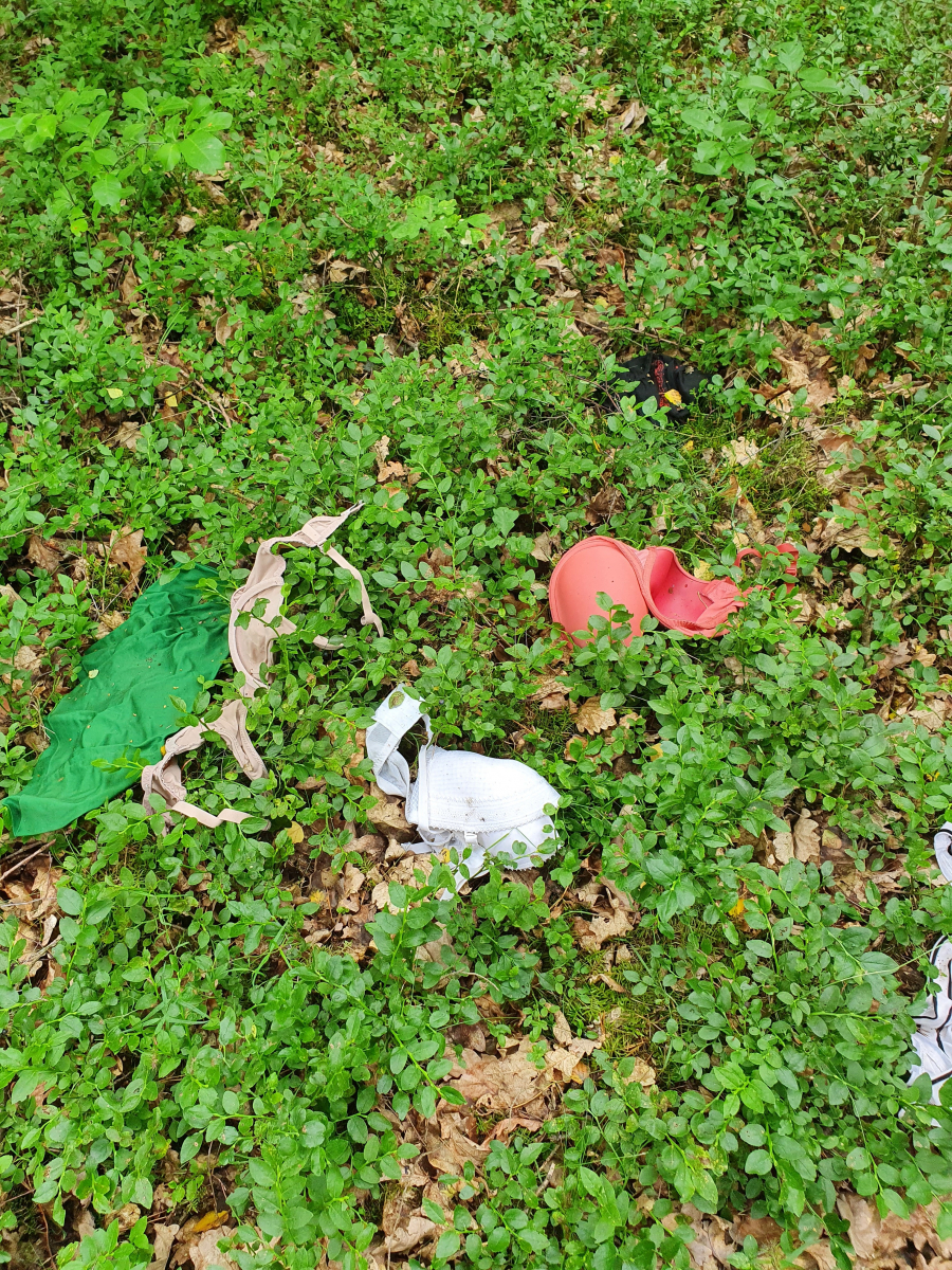 Ich denke , die Beute hat er mitgenommen , nur die Verpackung im Wald entsorgt.