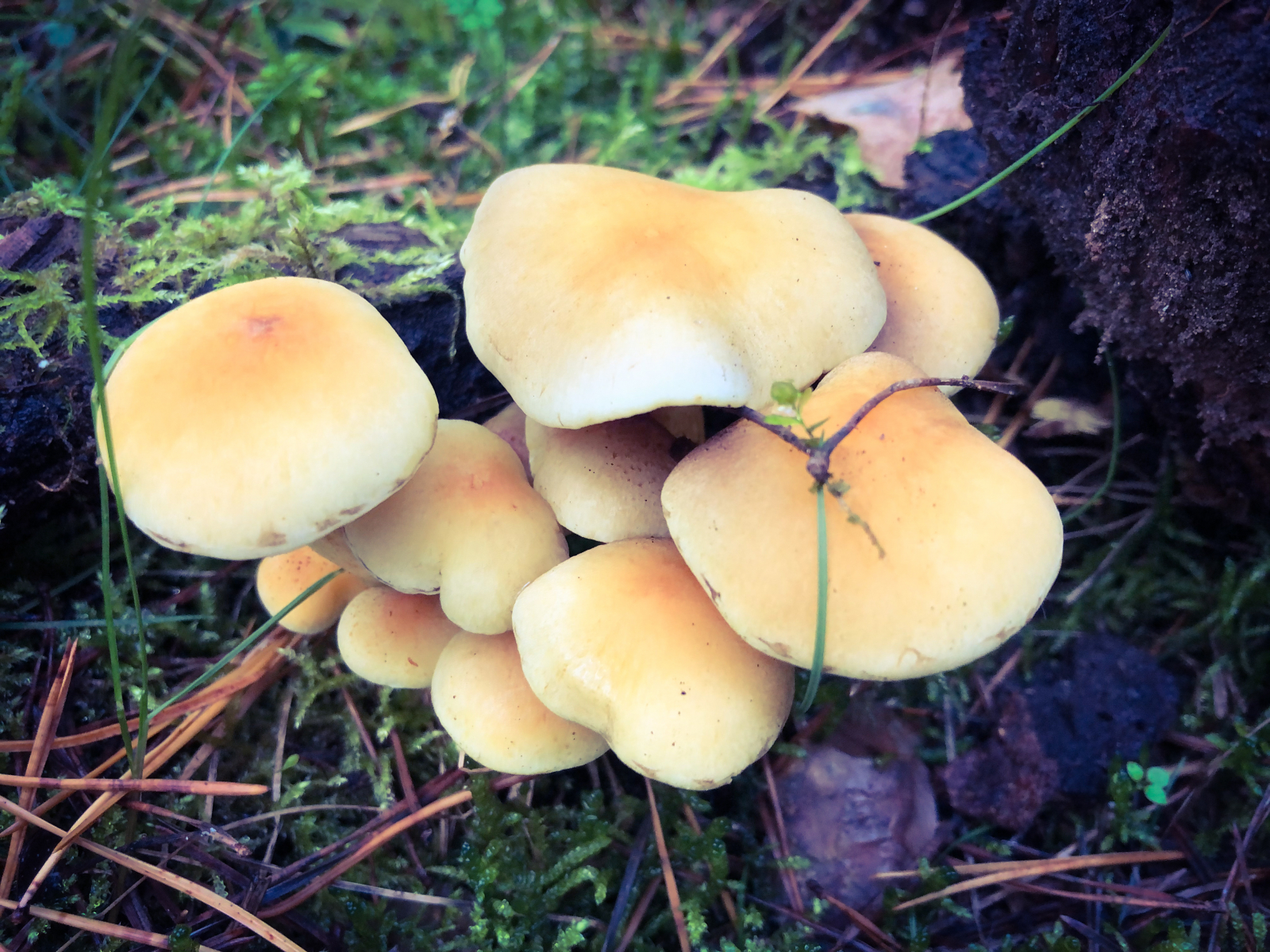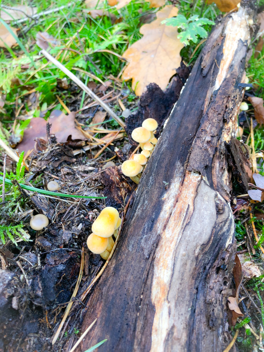 Reichlich Halimasch glaube ich oder ähnliche Pilze und einige Flaschenboviste.