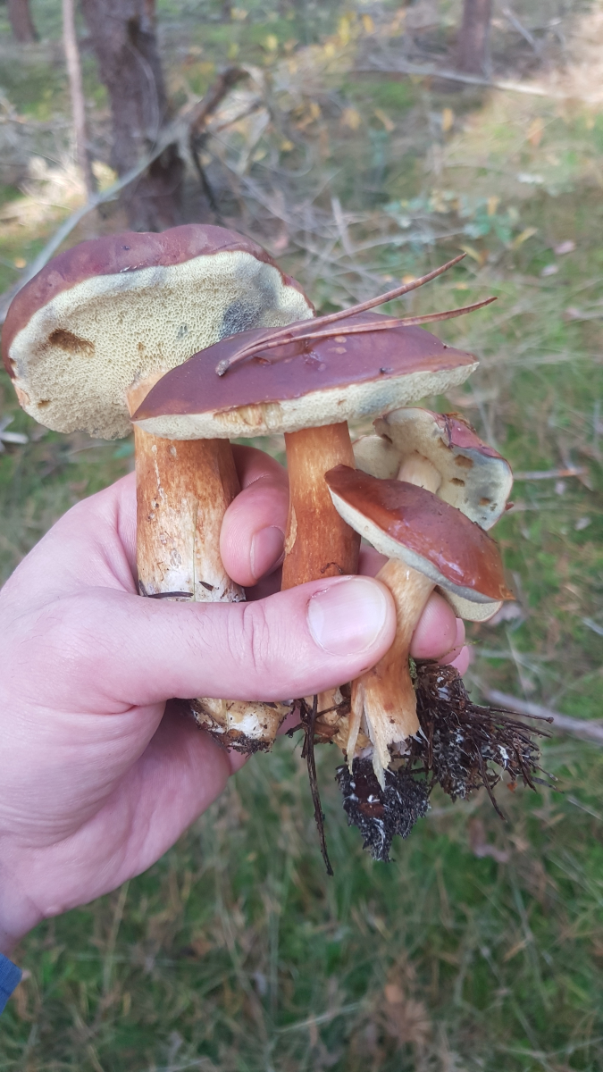 Wir waren ca 3h und zwei prall Gefüllte Körbe. Maronen, krause, semmel, rotfuß. Morgen putzen, mußten erst mal vor Freude essen gehen.
