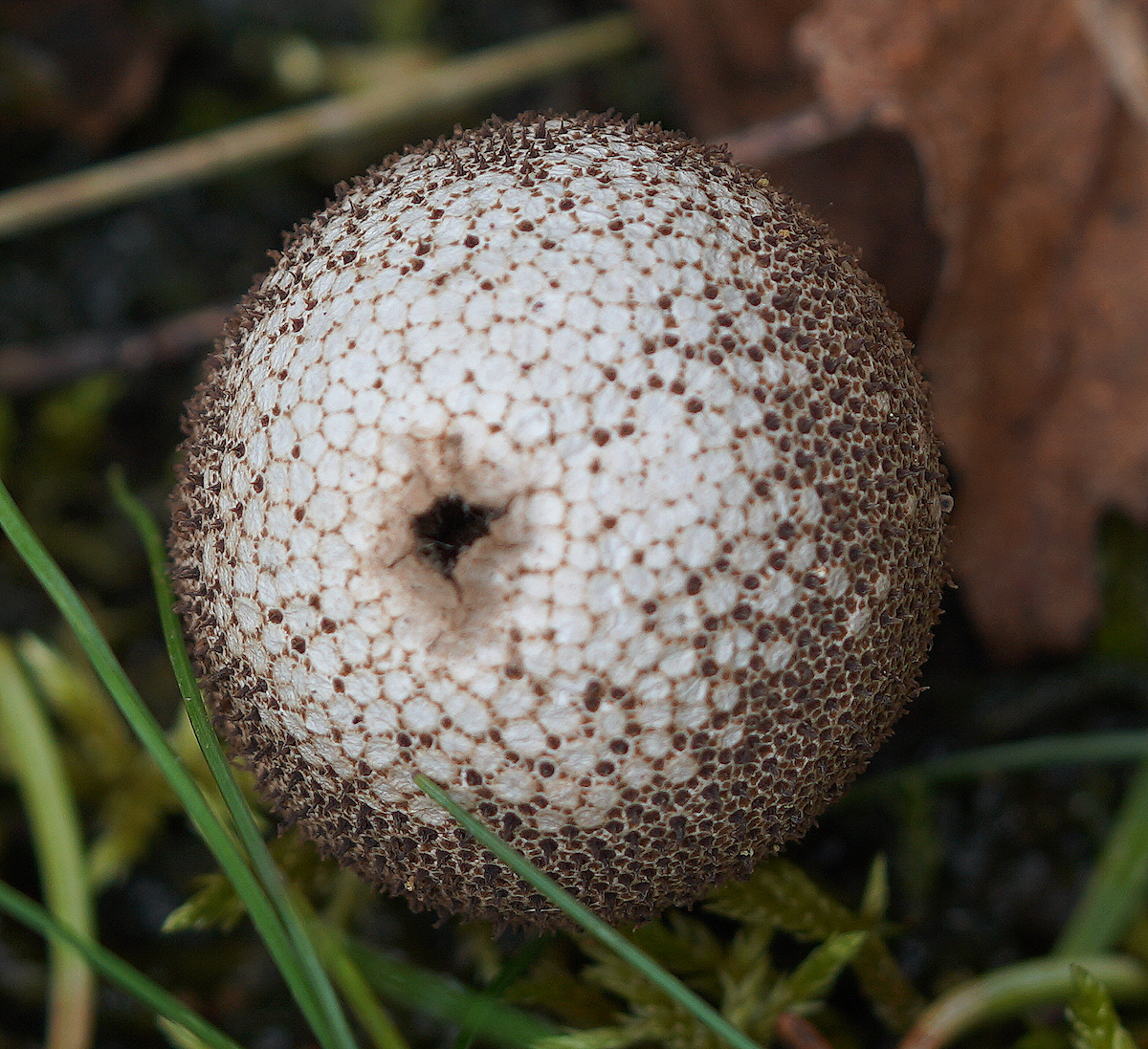 Der Flaschen-Stäubling, Lycoperdon perlatum, der im Alter seine Stacheln verliert.