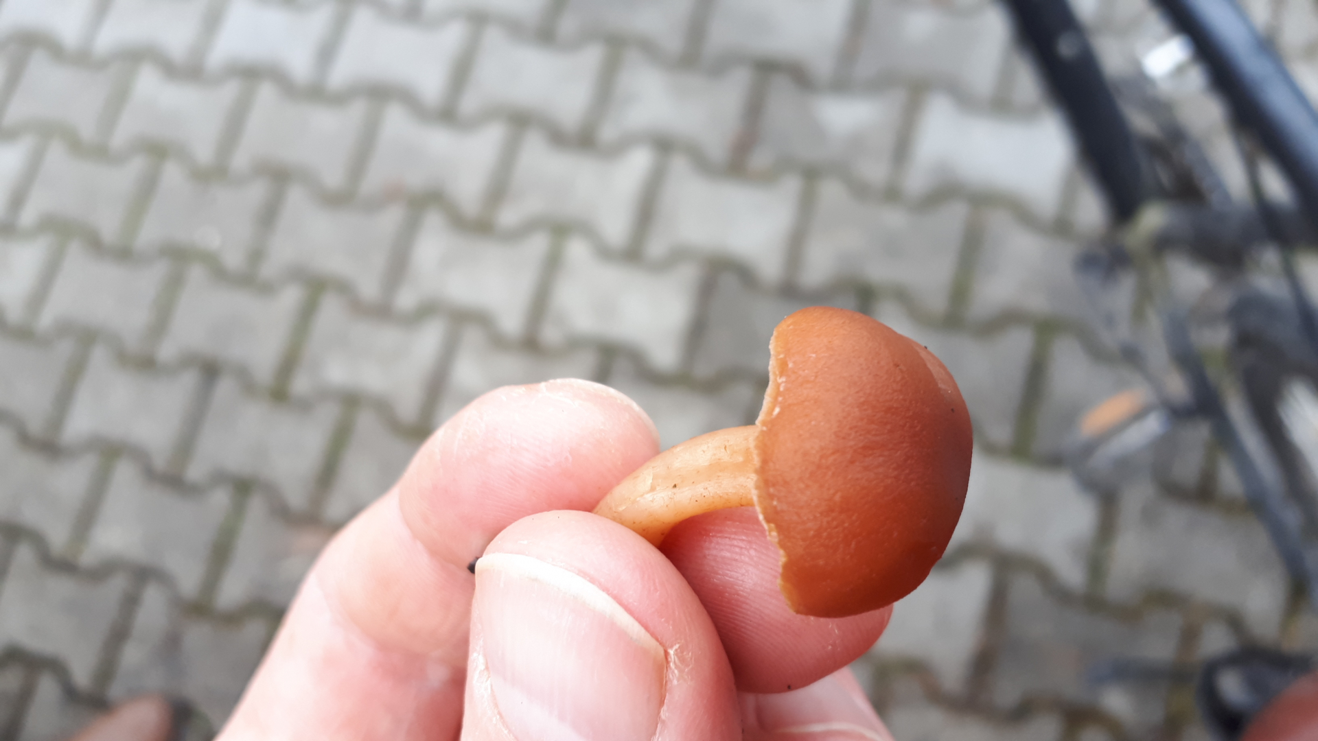Hab ich hier einen orangeroten Wurzelschnitzling gefunden? Auf Gras neben Parkplatz...