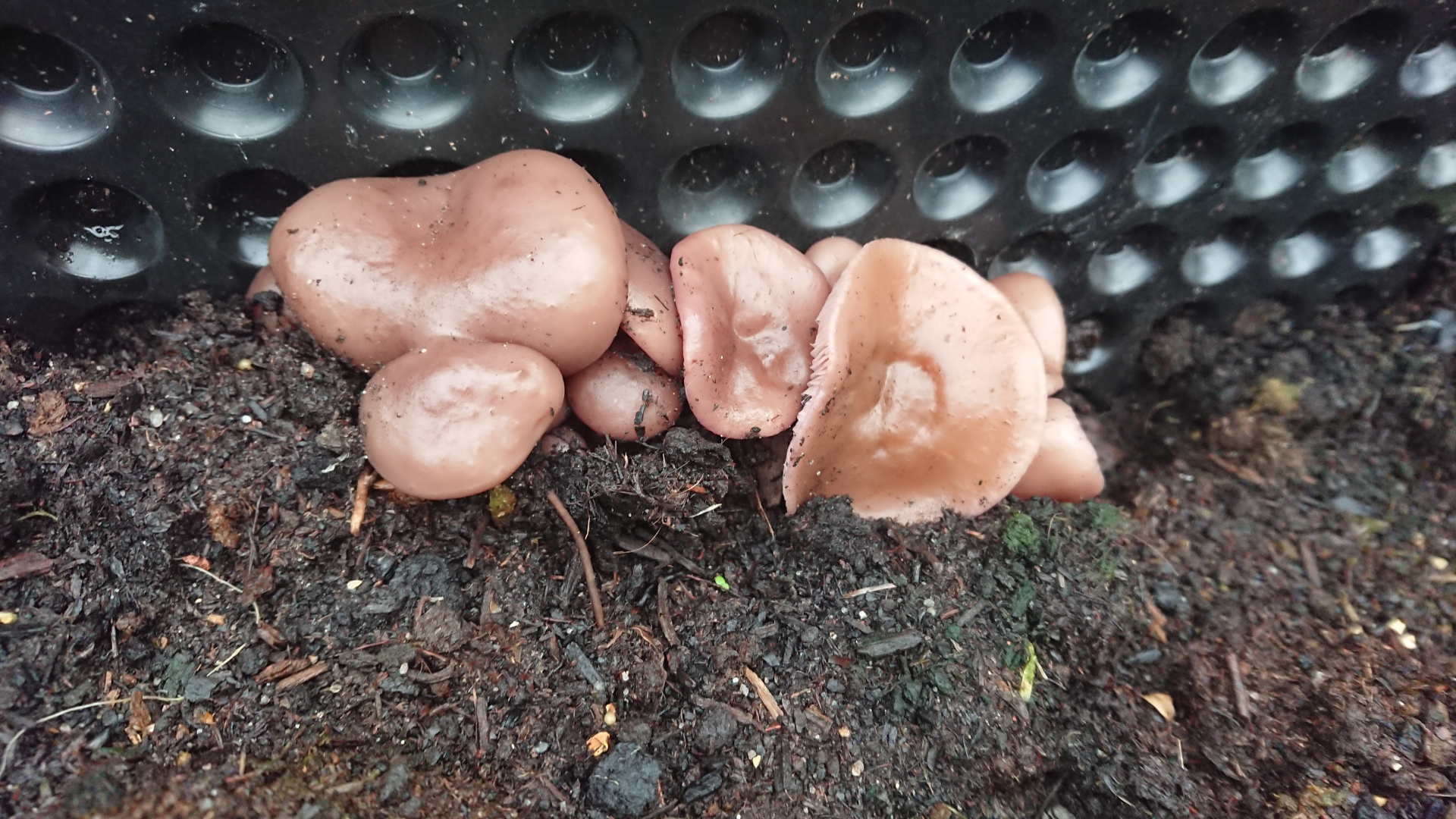 ich würd die Schwammerl in dem Beet eher für Rötelritterlinge, vllt. Lepista sordida, halten.
