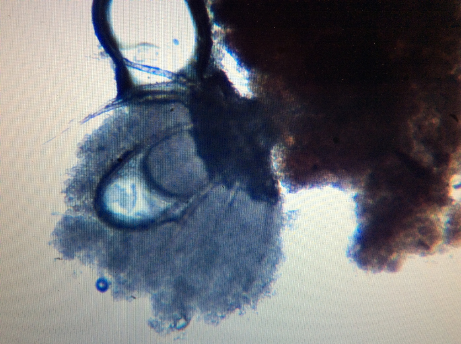 Unter dem Mikroskop ertrinkt alles in winzigen (5-6 x 3 my) Sporen.