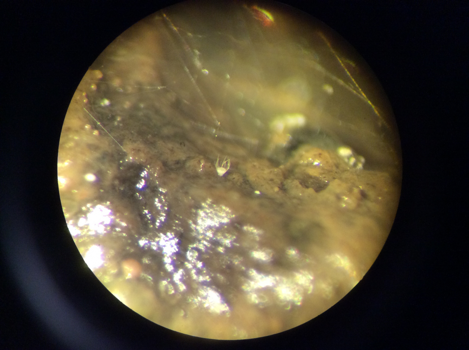 Da sind winzigste (< 0,2 mm) gestielte Becherchen mit langen septierten Borsten am Rand.