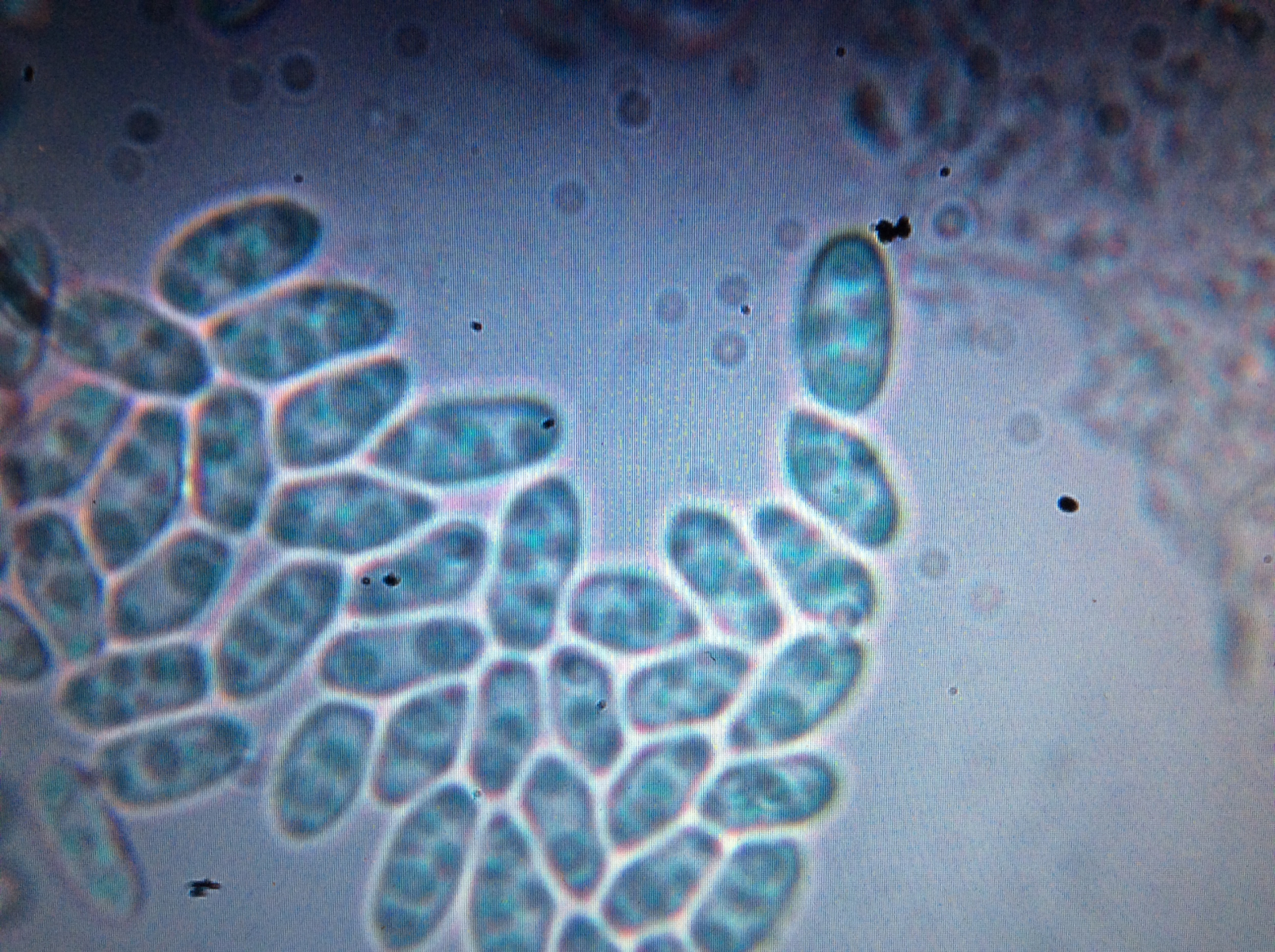 Unter dem Mikroskop ertrinkt alles in winzigen (5-6 x 3 my) Sporen.