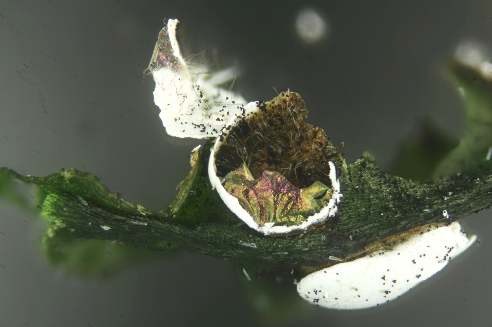 Leider sieht man die Columella auf Deinen Fotos nicht, die müßte weiß sein. Auch das Capillitium ist auf Deinen Mikrofotos nicht zu sehen, aber auf den Makrofotos sieht man, dass die Aufsammlung welches hat.