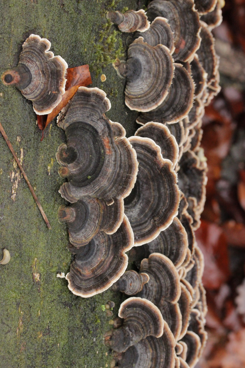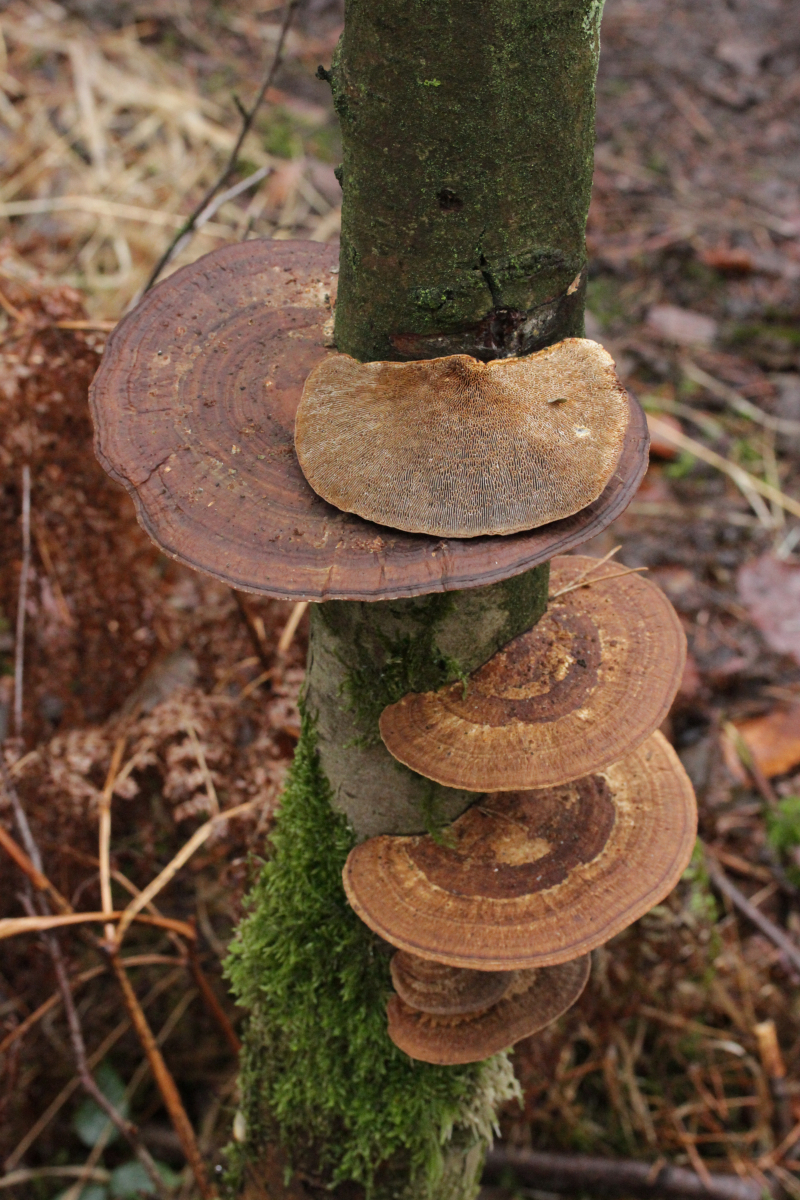 Der Stamm mit dem Blättling wurde sicher nicht gedreht. Das war ein meterdicker Buchenstamm, an dem auch noch Wurzeln mit Erde dranhingen. Es war aber so, daß es neben diesen langgestreckten Fruchtkörpern noch rundlicher gewachsene Exemplare gab, die dann eben eher auf der Oberseite des Stammes saßen als an der Seite (erkennt man ansatzweise auch noch ganz links im Bild).