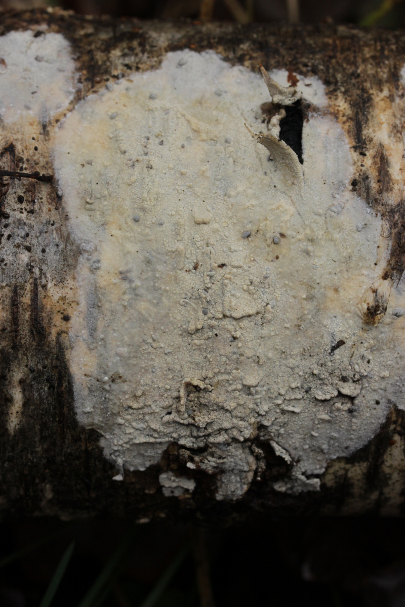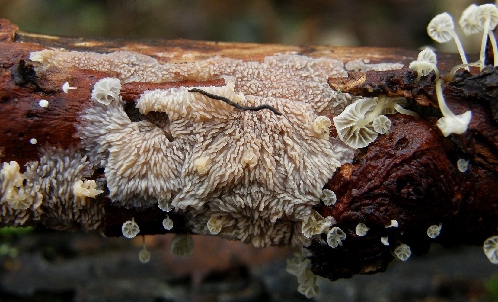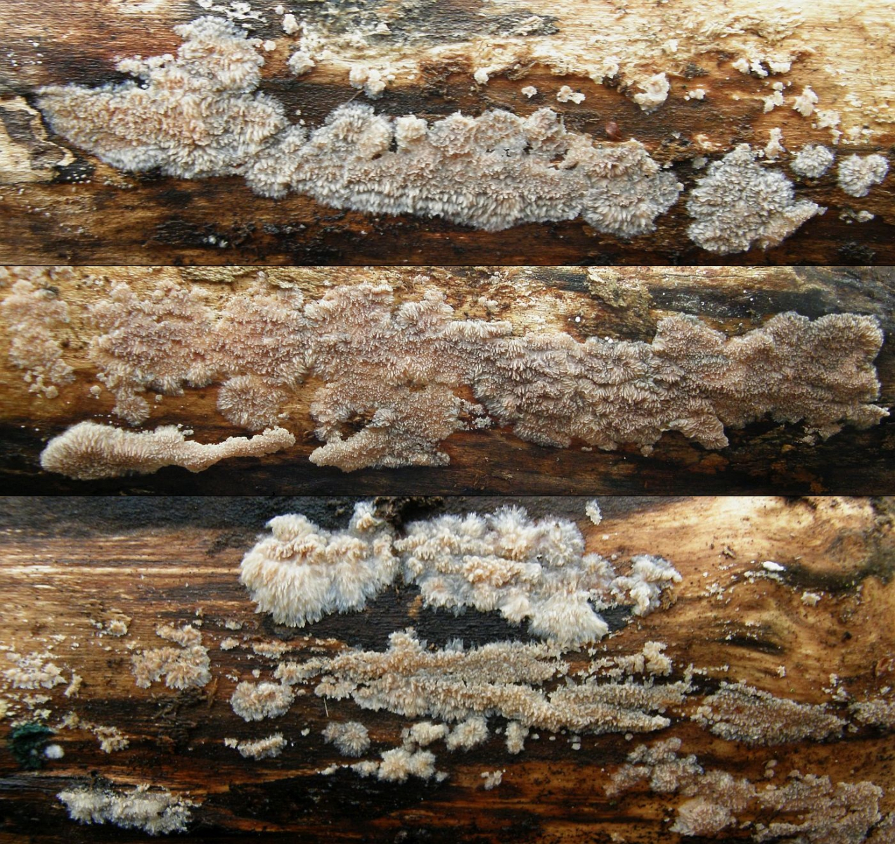 Ob diese komisch strukturierten, blassen (oft komplett ohne orangetöne) Winterkollektionen von Phlebia radiata vielleicht sogar was Eigenes sein könnten, das müssen Genetiker klären - wobei in der ITS wohl keine Abweichung zu finden ist, die eine Trennung auf Artebene rechtfertigen würde.