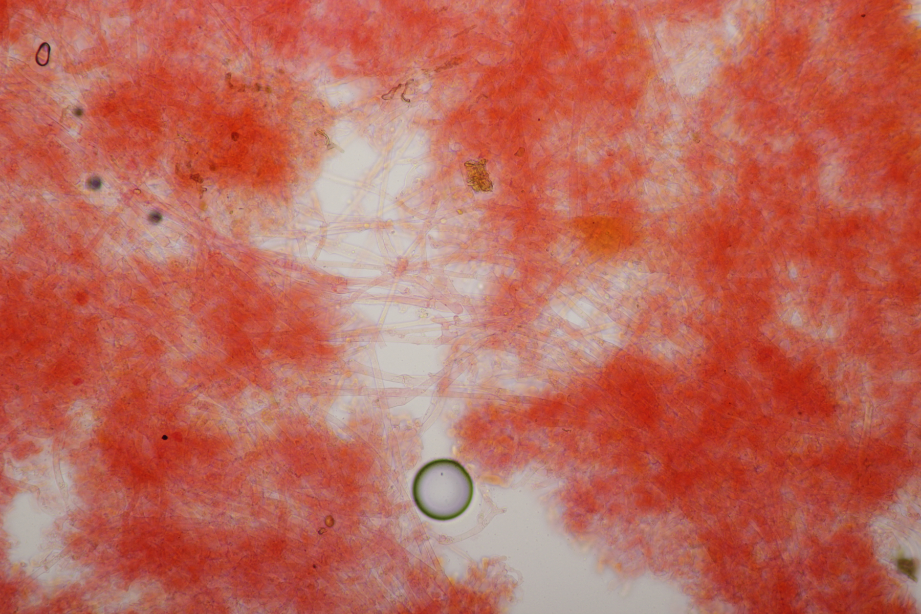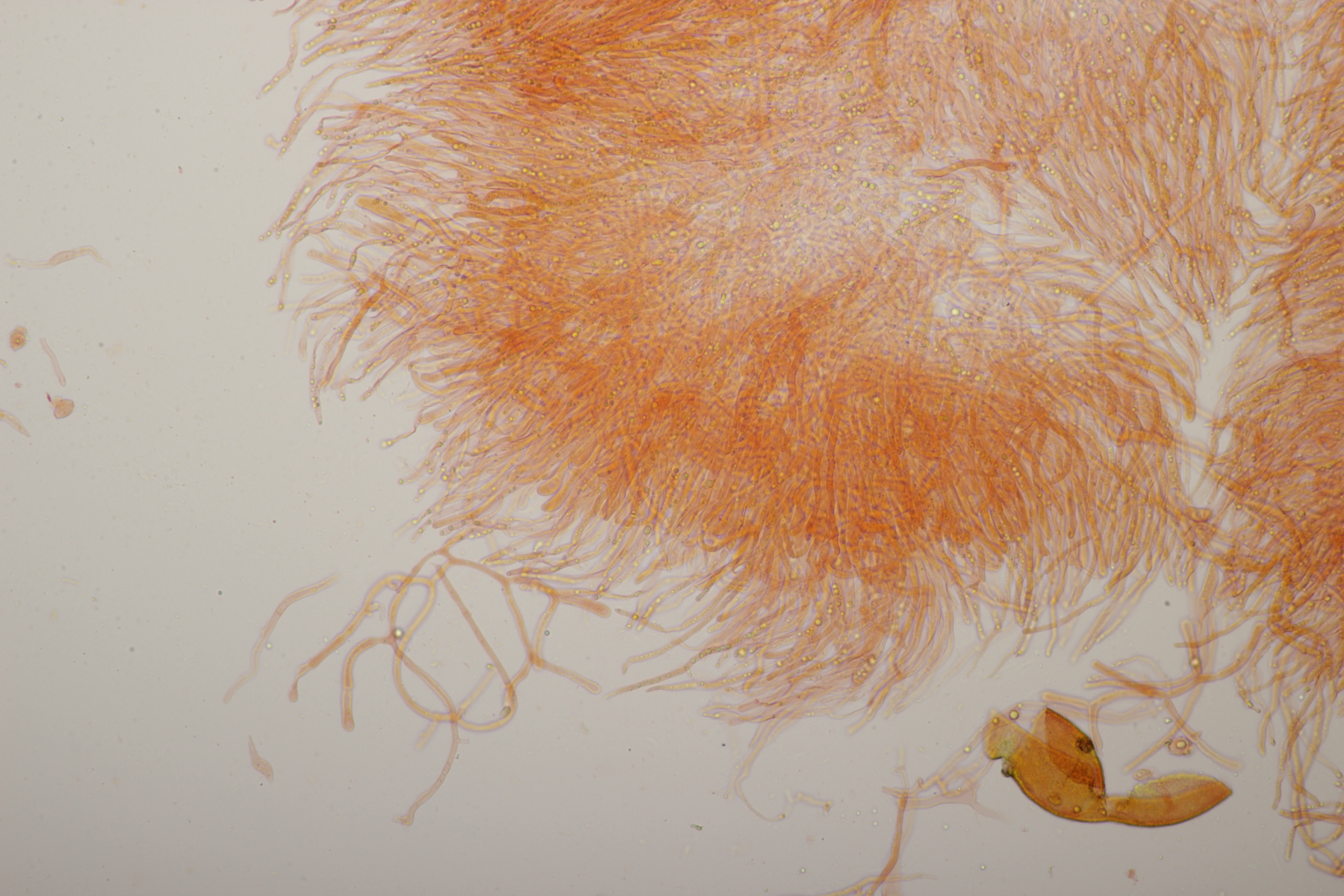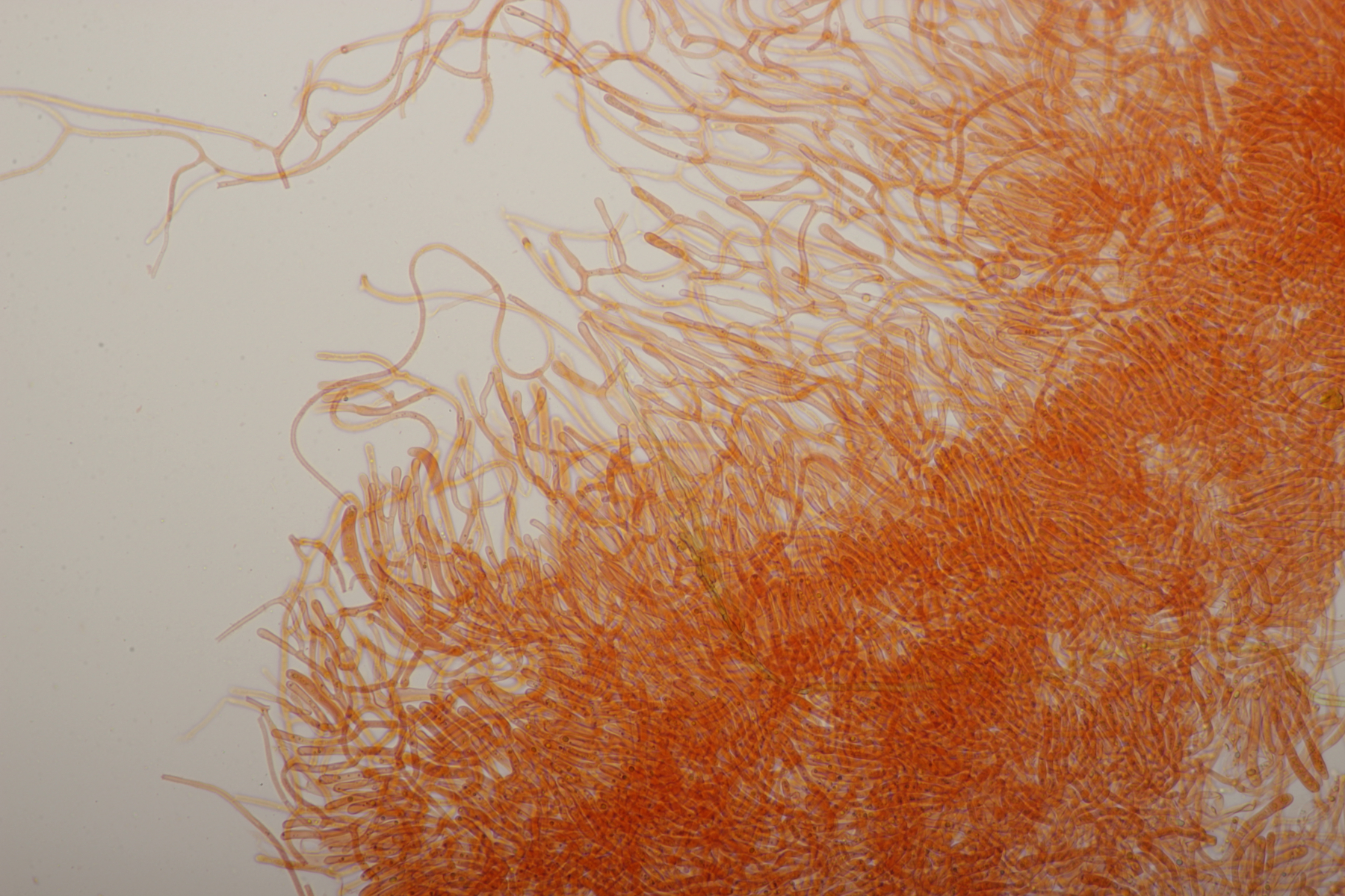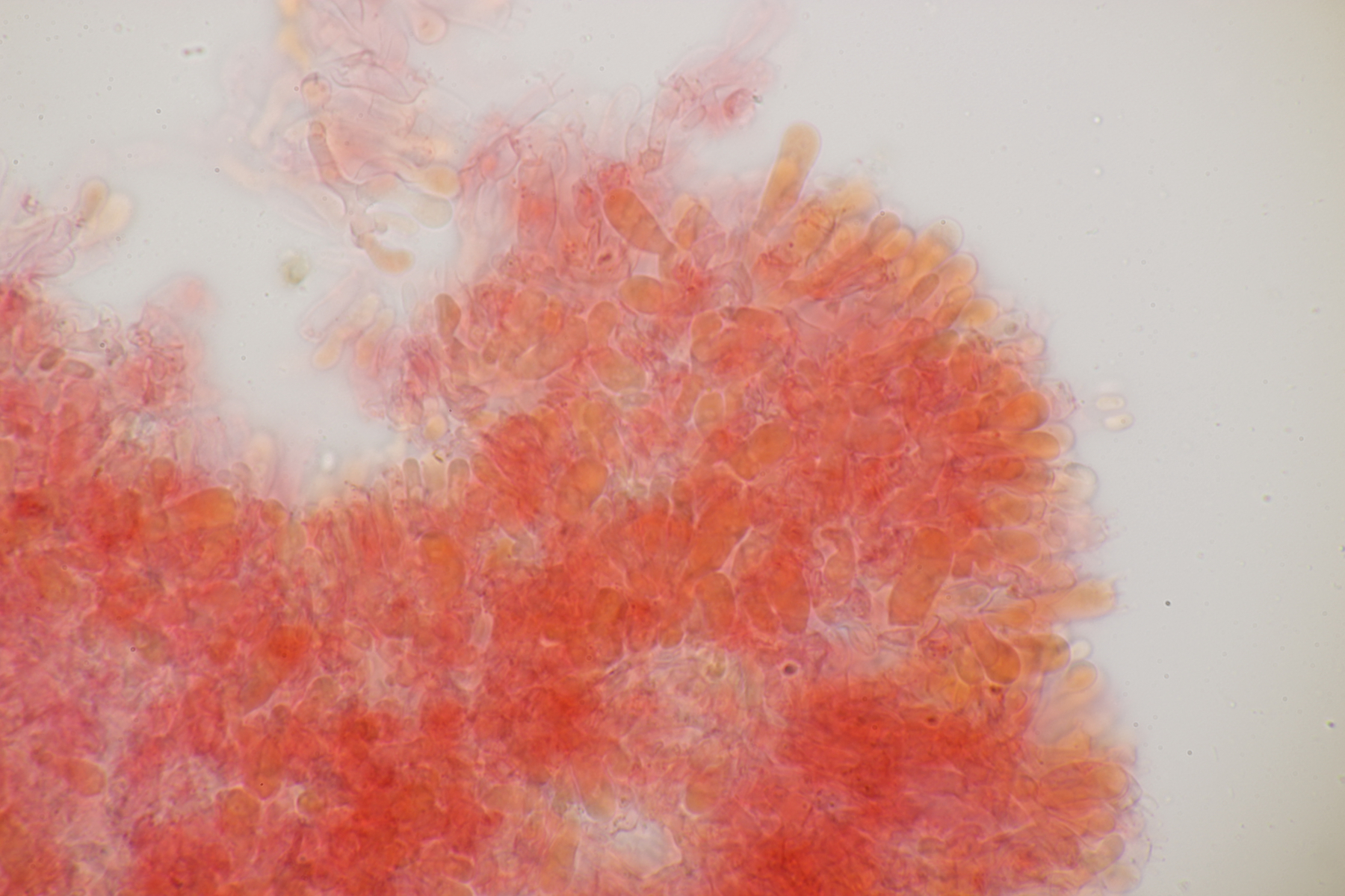 Problem am Rande: Phlebia radiata und Phlebia rufa sind halt mikroskopisch nahezu identisch. Am ehesten erkennt man noch einen Unterschied bei Zystiden, die bei Phlebia rufa nach meinen Beobachtungen tendenziell fetter, breiter, insgesamt größer und oft auch zahlreicher sind.